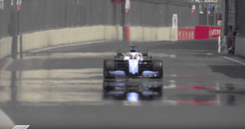 The first practice session of the weekend barely lasted ten minutes before officials called the whole thing off. A few cars went out on track, set some times. And then poor Williams driver George Russell saw his car get absolutely demolished by a loose manhole cover in Turn 3.