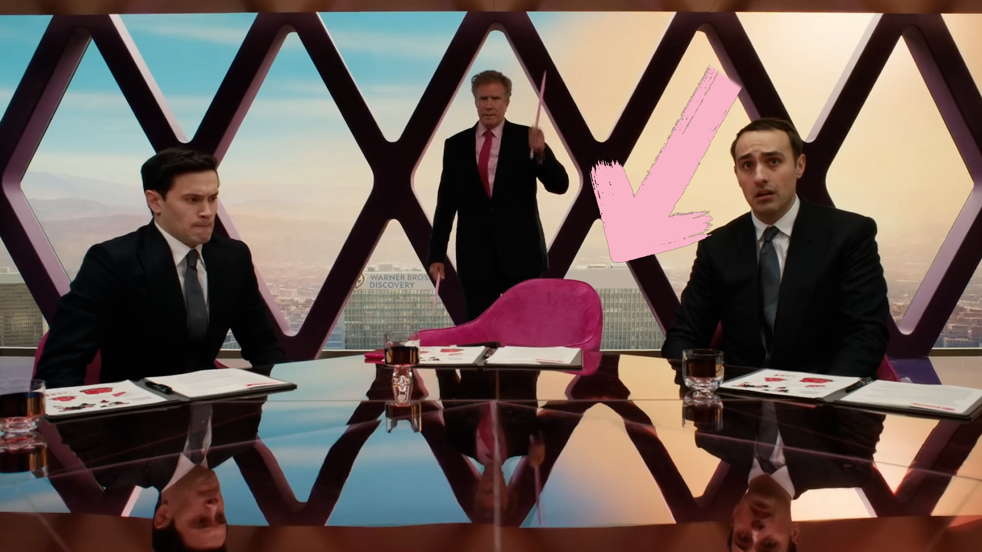 Do you see that big pink arrow? Of course you do. In the actual movie, that building has the GM logo on it. Unfortunately, marketing material does not. I love it, and I need to know how much money General Motors spent on this movie. I cannot imagine it wasn't anything less than A LOT.