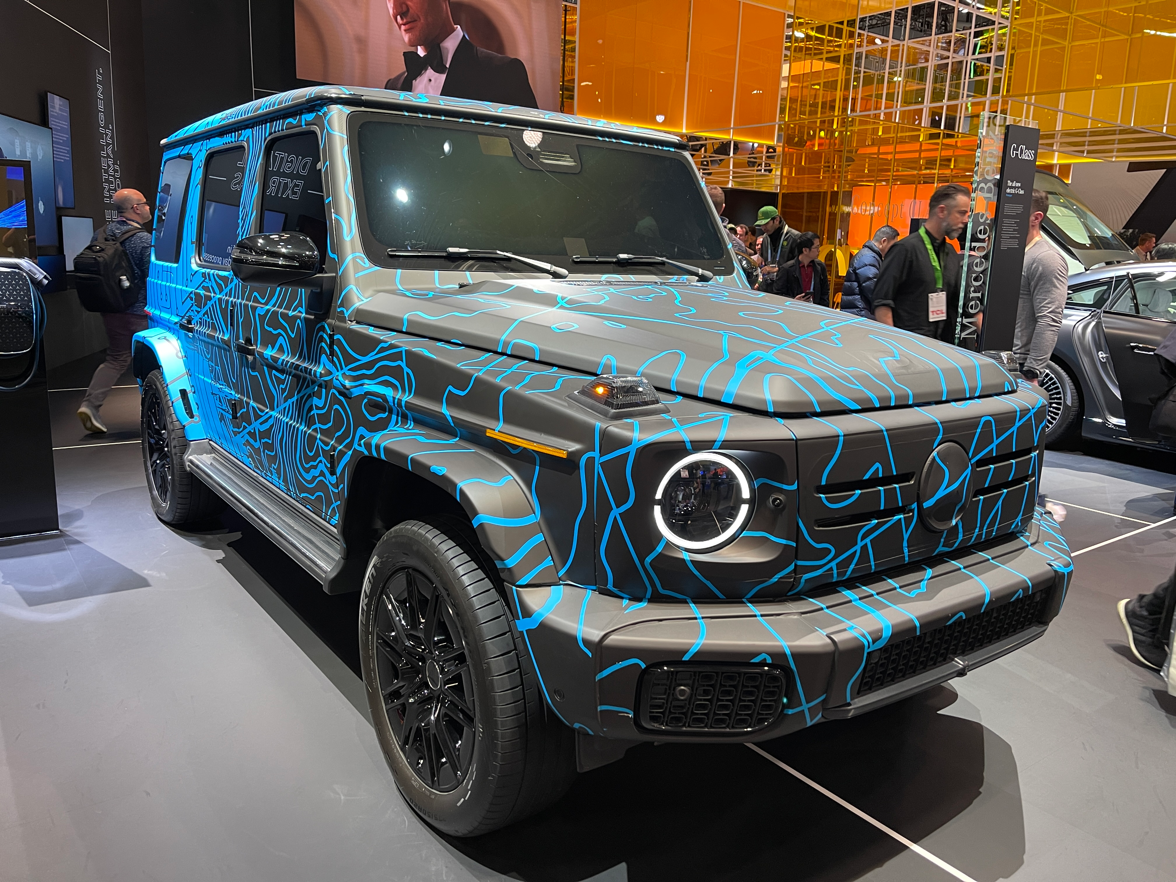 Mercedes-Benz announced a slew of stuff at CES, from a new AI virtual assistant to musical EV sounds developed with Will.I.Am that change as you drive. CES was also host to the North American debuts of the Concept CLA and the new E-Class, but the only thing that I truly care about is the camouflaged prototype of the upcoming electric G-Class. First previewed by the EQG concept in 2021, the G-Class EV will go on sale later this year, and Mercedes says it will be the best G-wagen ever made both on-road and off.