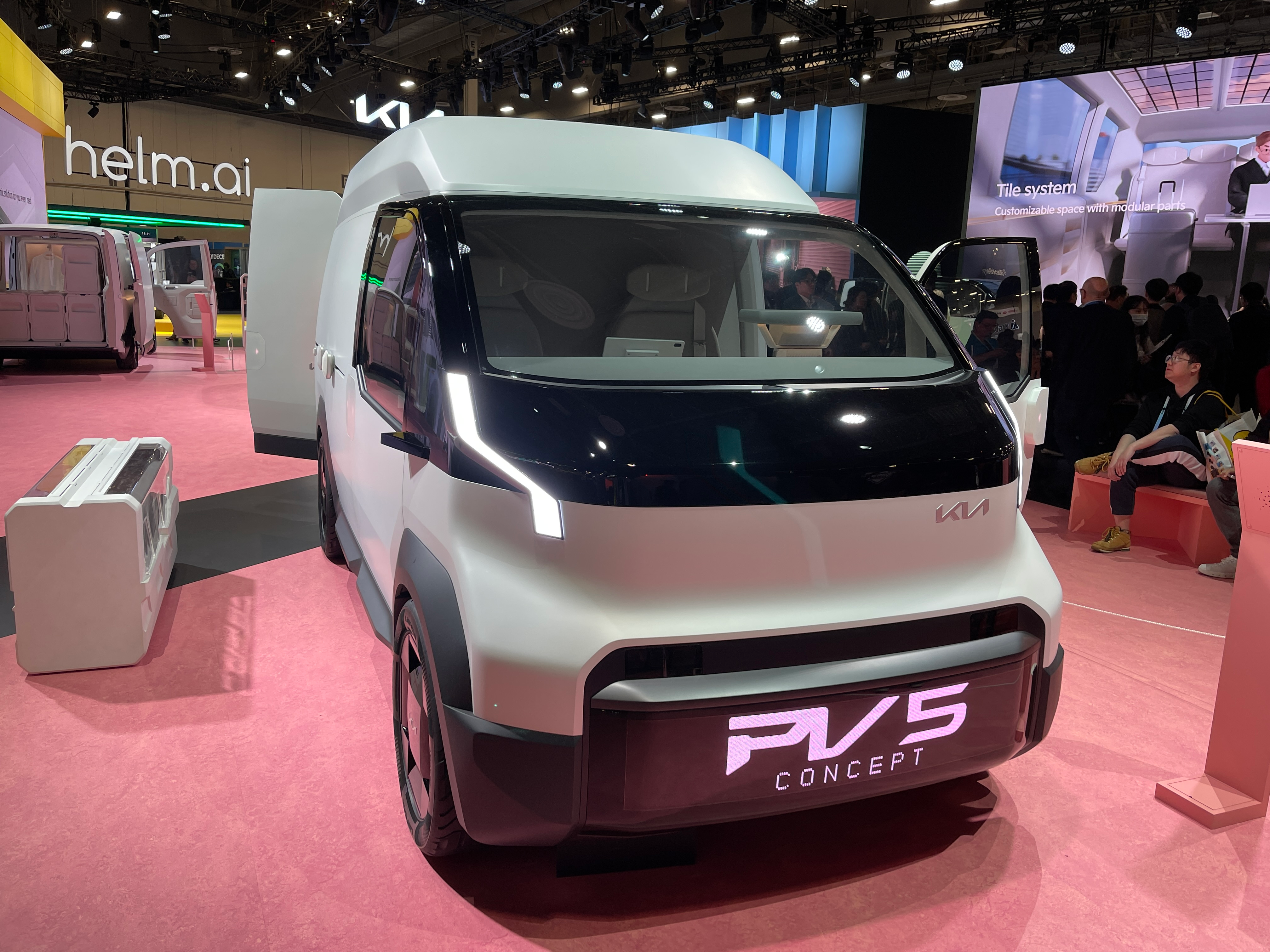 Kia's modular platform is called the Platform Beyond Vehicle, or PBV. Owners will be able to change the layout of their van whenever they feel like it, so a PV5 can go from a standard height people hauler to a high-roof cargo van with a few simple steps. In addition to the PV5, which was shown in multiple configurations, Kia also revealed a tiny PV1 designed for easy mobility in hyper-urban environments, and the PV7, the largest model in the lineup.