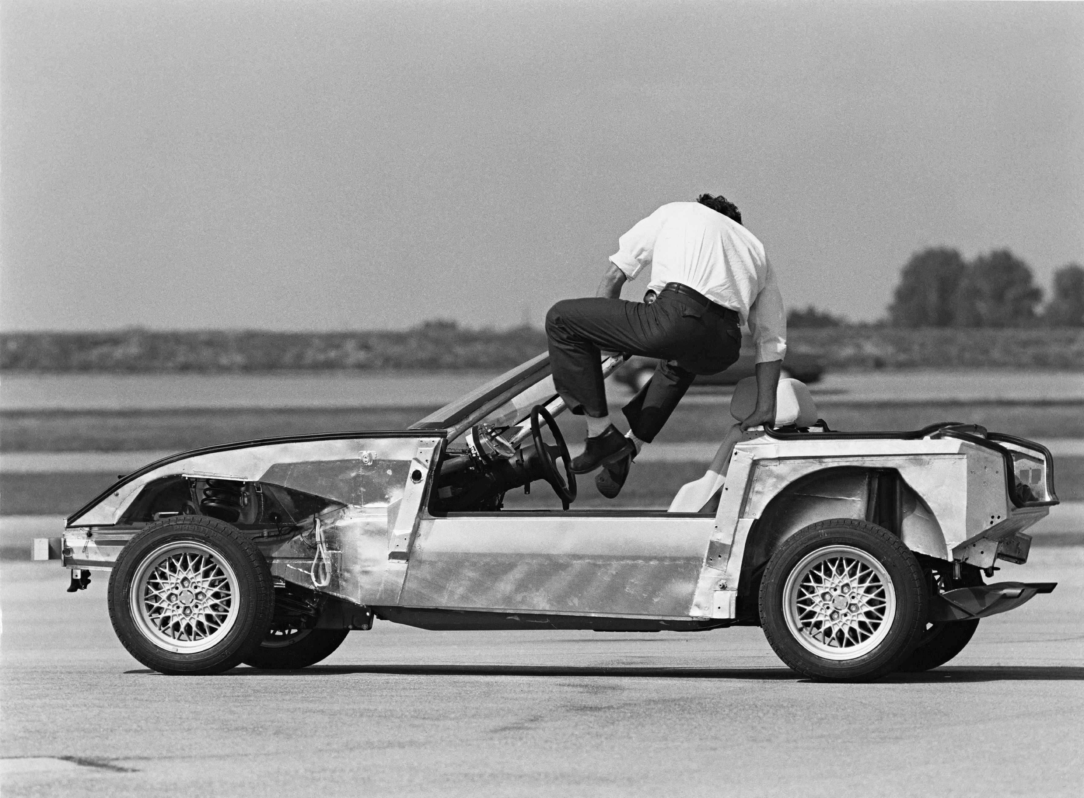 The Director of BMW Technik GmbH at that time, Ulrich Bez, gave an emphatic demonstration of the benefits of the plastic panelling: he jumped with both feet onto a vehicle wing lying on the floor, which promptly buckled – then sprang back to its original shape when he stepped off it again.