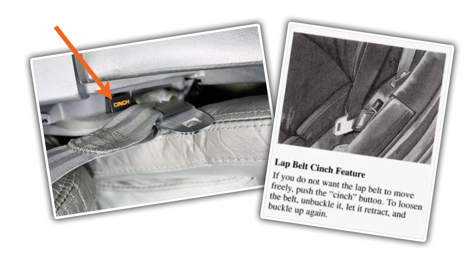 See that? It says "CINCH" and that's not a synonym for "extremely easy" but references the verb cinch as in to make really, really tight. Which is just what the belt does when you push that button.
