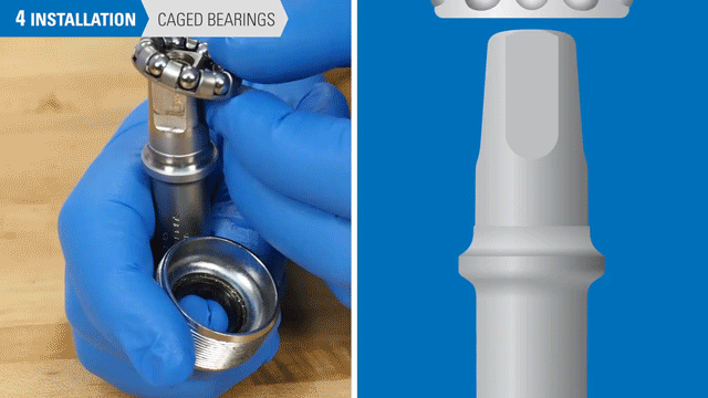 Well, in every caged-bearing bottom bracket, you point the cage towards the inside of the bike so that the ball bearings themselves can roll on their cup-shaped bearing surfaces.
