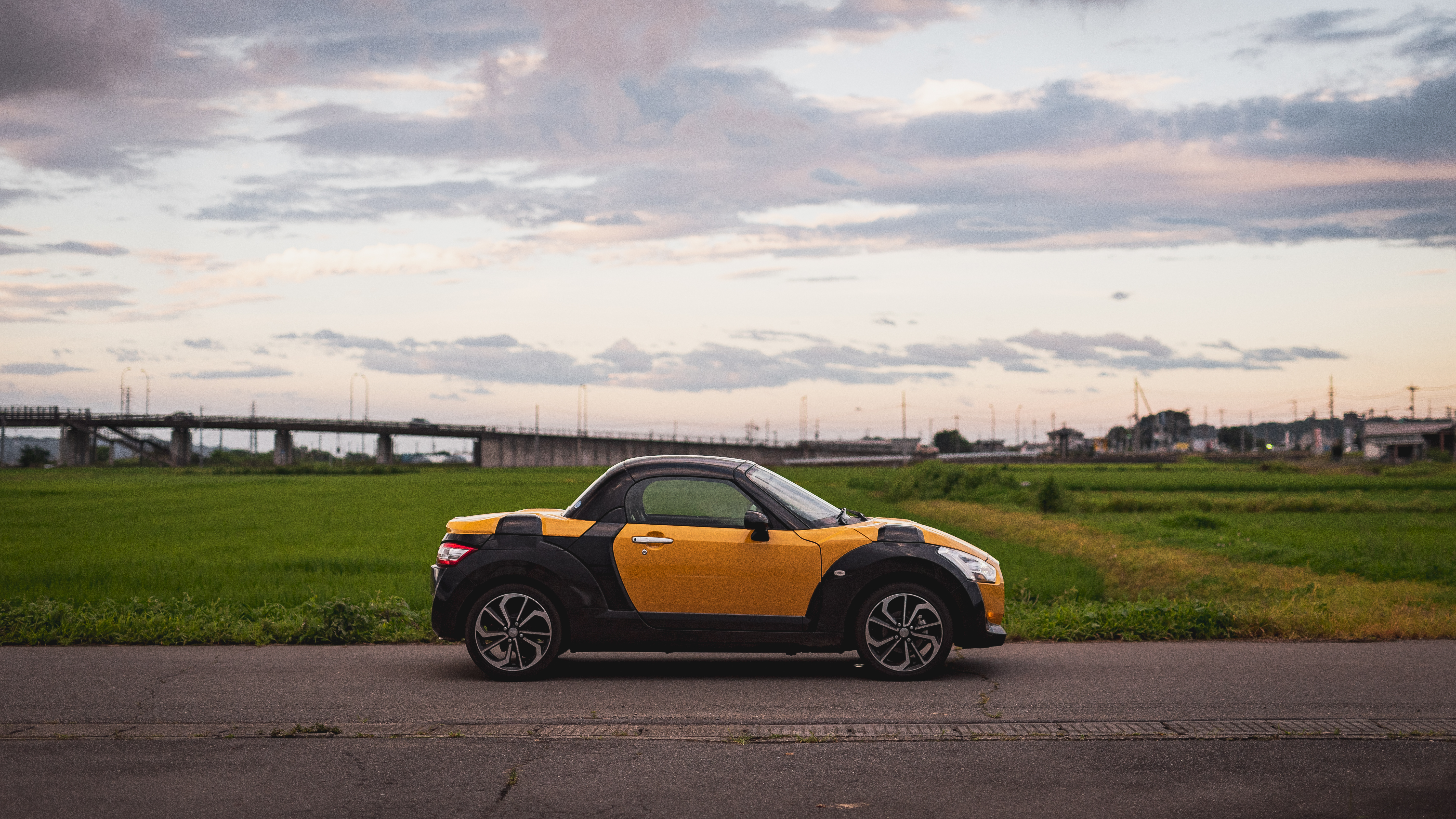 The Copen comes in three different variations. There's the Robe, which is the more conventional version of the second-generation Copen. There's the Cero which takes inspiration from the rounder and cuter design of the original Copen. And then there's the XPlay, which is what I had. You can get it in colors other than bumblebee, if you're curious.