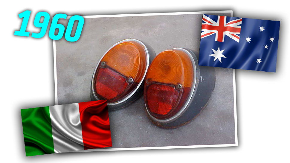 But for that one glorious year, in those two glorious countries, the 50/50 light came in to save the day, with bright orange blinks of turn indication. Beetles were built in Australia as well as Germany at this time, so I suspect that these lights were probably made in Australia and imported into Italy for fitment on Italian Beetles.