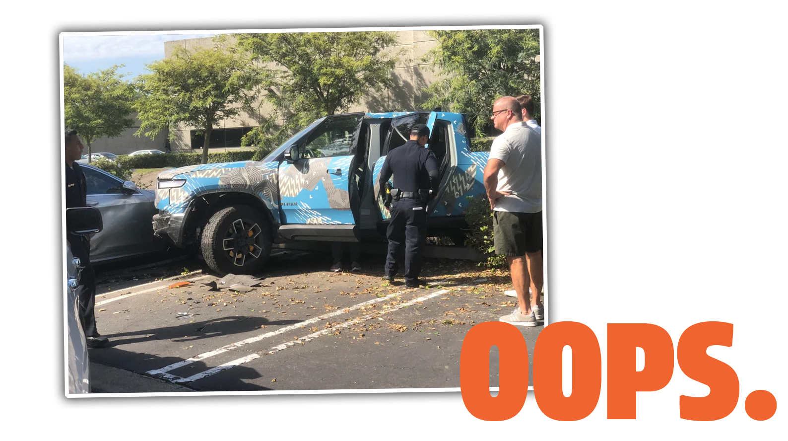 Every vehicle has to have its first crash, and it looks like Rivian did it with a pre-production car, even