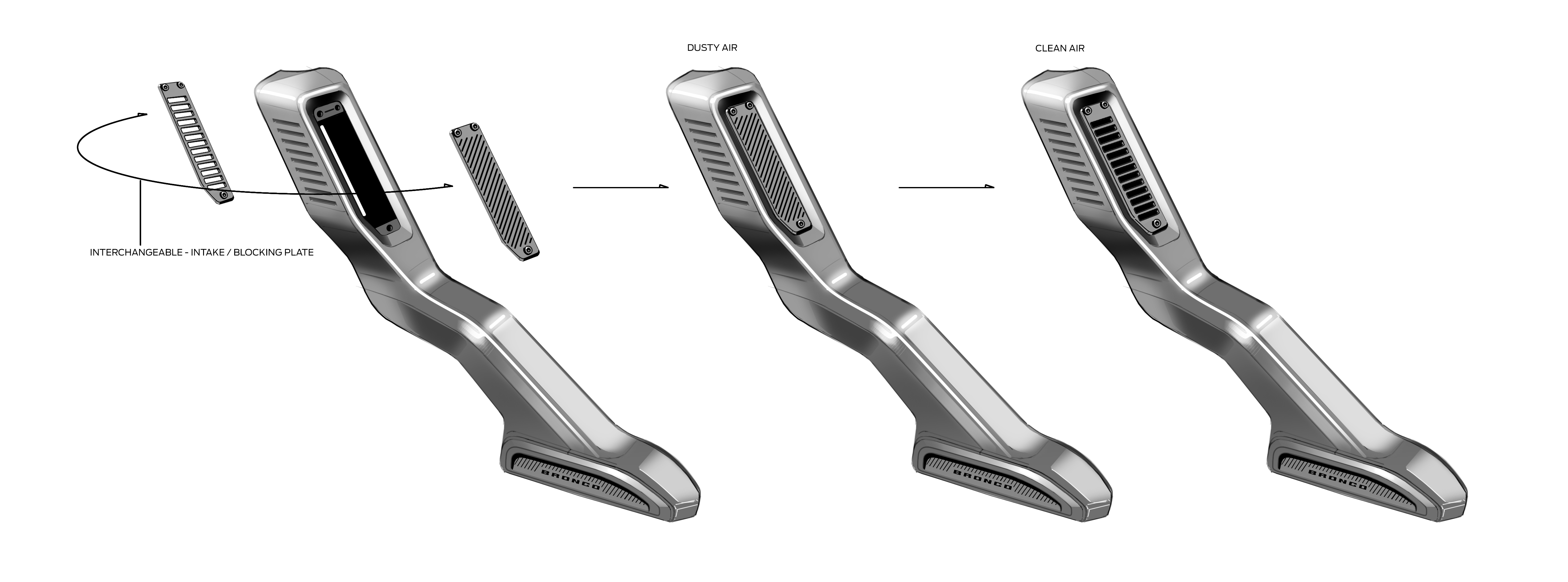 That all-important snorkel will be positioned on the passenger-side A pillar. It's a Ford in-house designed part that has a few different uses. It has two swappable plates at the top that can be revered to keep dust, snow and water out of the engine depending on what sort of terrain you're dealing with.