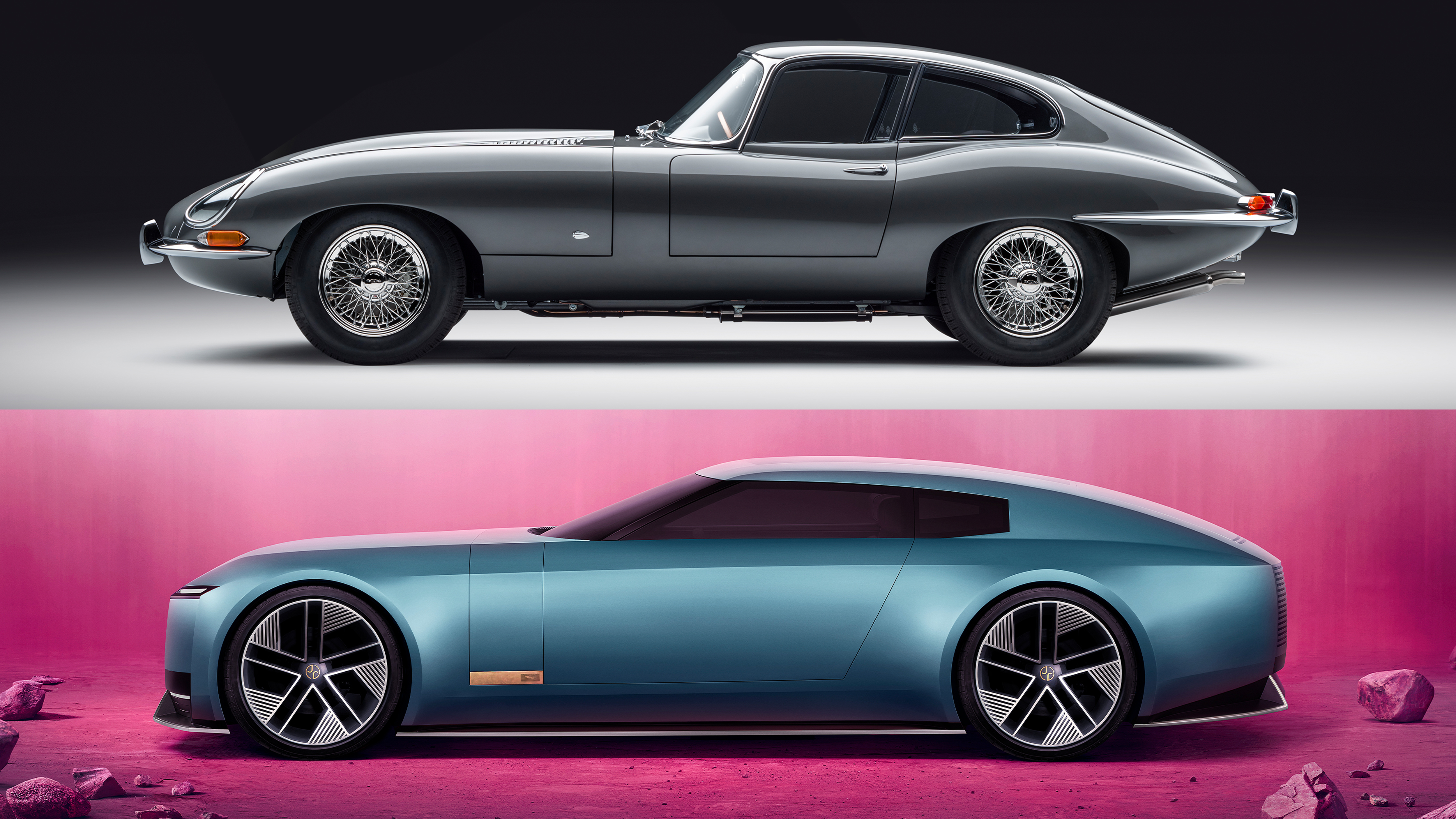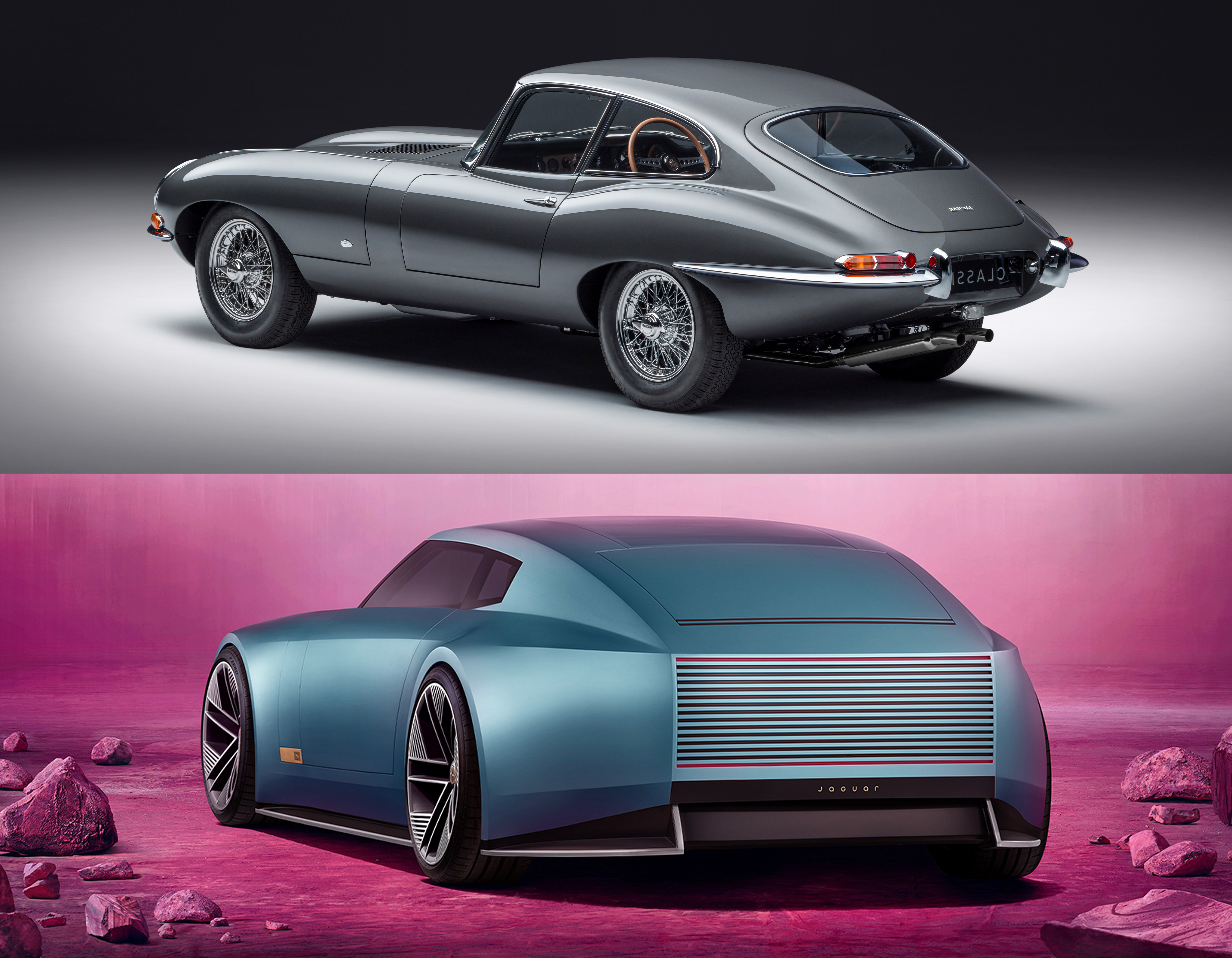 The cars' faces are totally different, expressive in different ways, but there are still things like the Type 00's crisp front fender line that reminds me of the E-Type. Again, the Type 00's rear end design feels totally futuristic, but its rear fenders are similarly wide and pronounced. The E-Type coupe's side-hinged, slightly bulbous hatch has always delighted me, and the Type 00 has its own weird approach to a liftgate, with that metal panel moving up and forward to expose the cargo area.