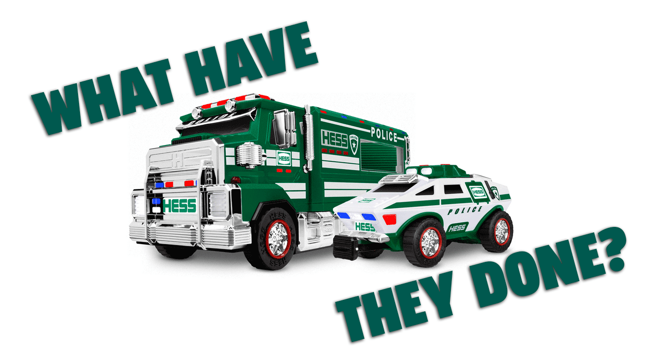 I realize I'm complaining about a Hess Truck here, a toy designed to sell an oil company to children. It's never been a morally wholesome product. But this year, the evil that Hess sells is far more direct than microplastics or climate change — it's the ever-more overwhelming, unchecked power of local police.