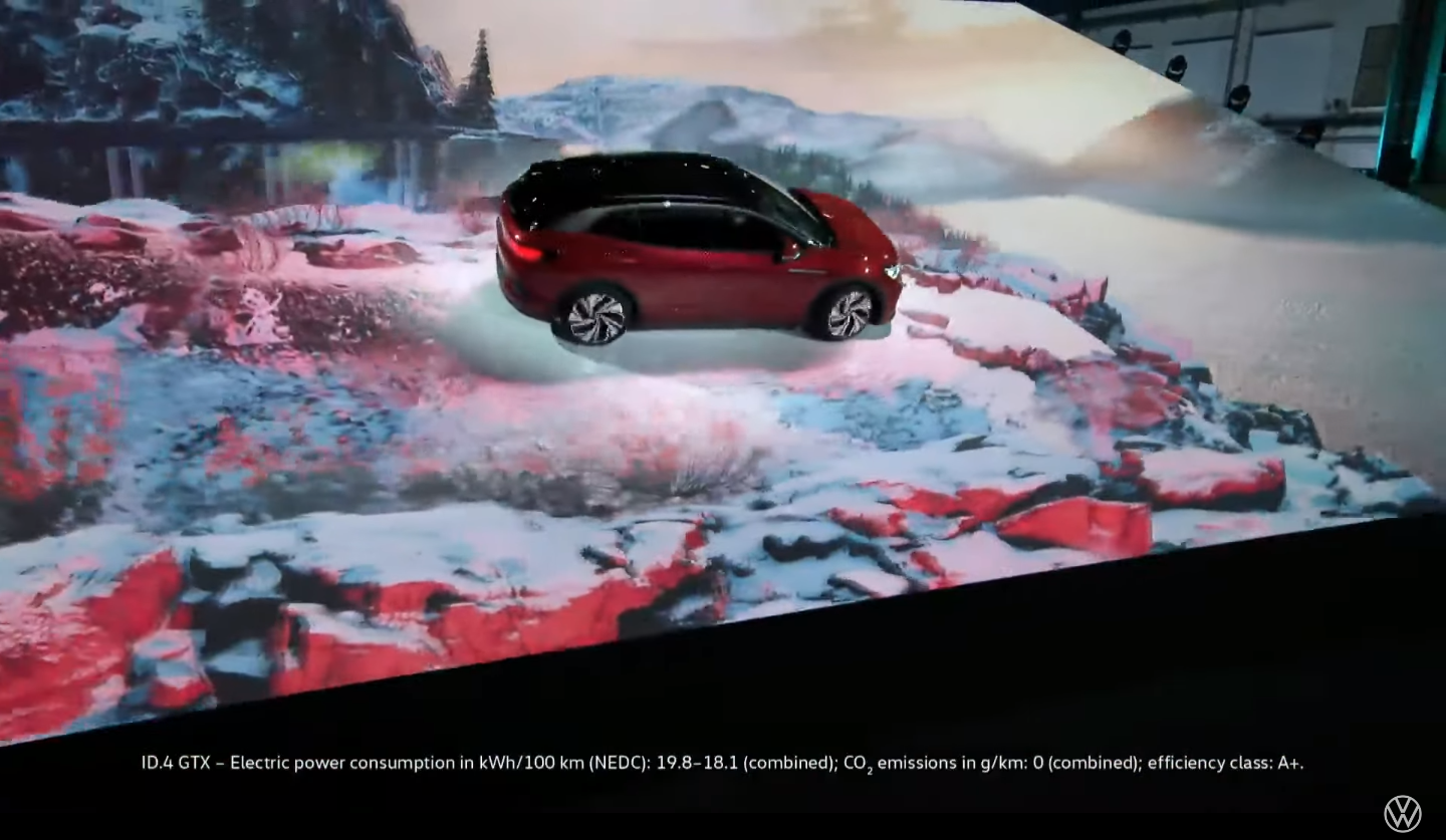 Since VW couldn't fill a hangar with people, it instead put a giant ramp inside, then made the ID.4 GTX crawl around it.