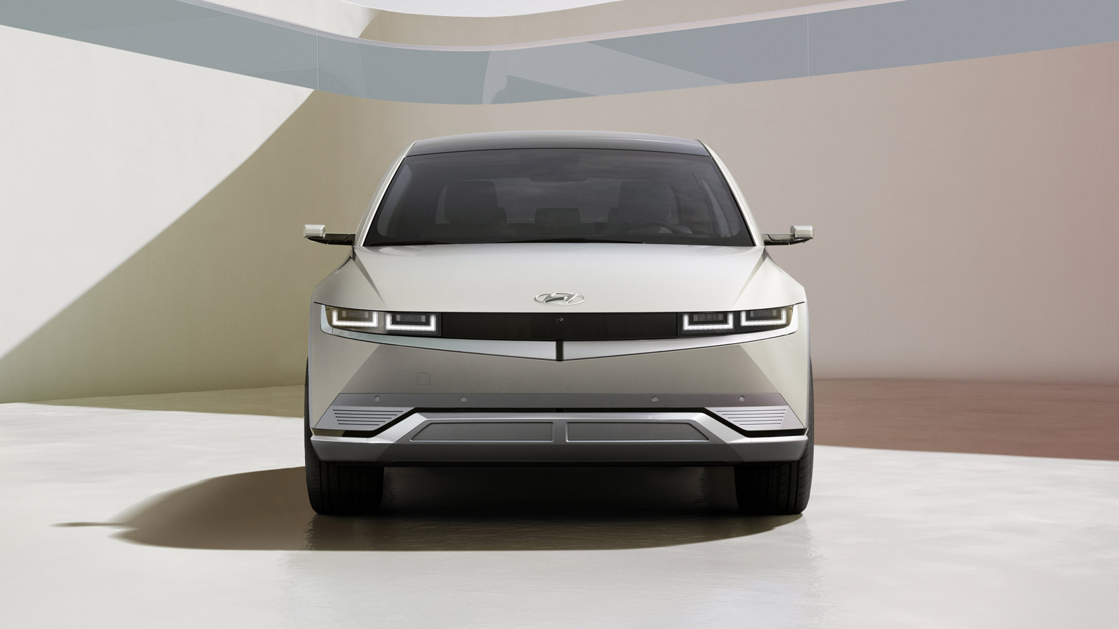 Just as Hyundai promised, the Ioniq 5's exterior shares much in common with that of the Hyundai 45 show car. The 45 does look a bit leaner and more sculpted by comparison, with less cladding along the sills. But overall, the pixelated, retro motif of the concept has clearly been preserved. The classic hatch proportions are pleasing to look at and allow a lot of interior space, as the Ioniq 5's 118-inch wheelbase is actually four inches longer than the Hyundai Palisade's.