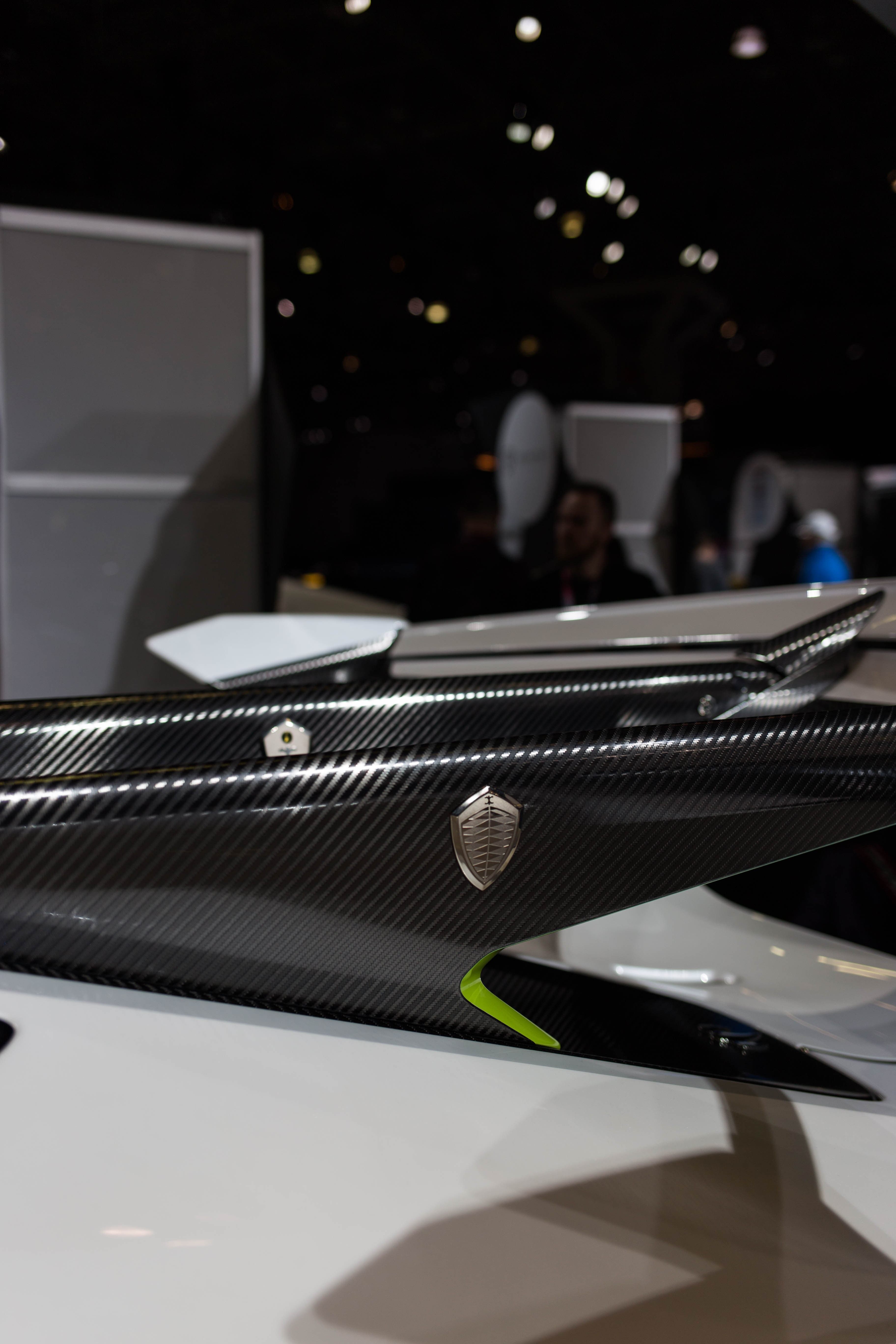 Koenigseggs have always had big wings, because they are cars with big engines that make big power. But the wing on this new car is something else. It's nearly half the length of the entire car, if you count the stands. Those stands basically start from the car's middle and are tastefully left as bare carbon fiber.