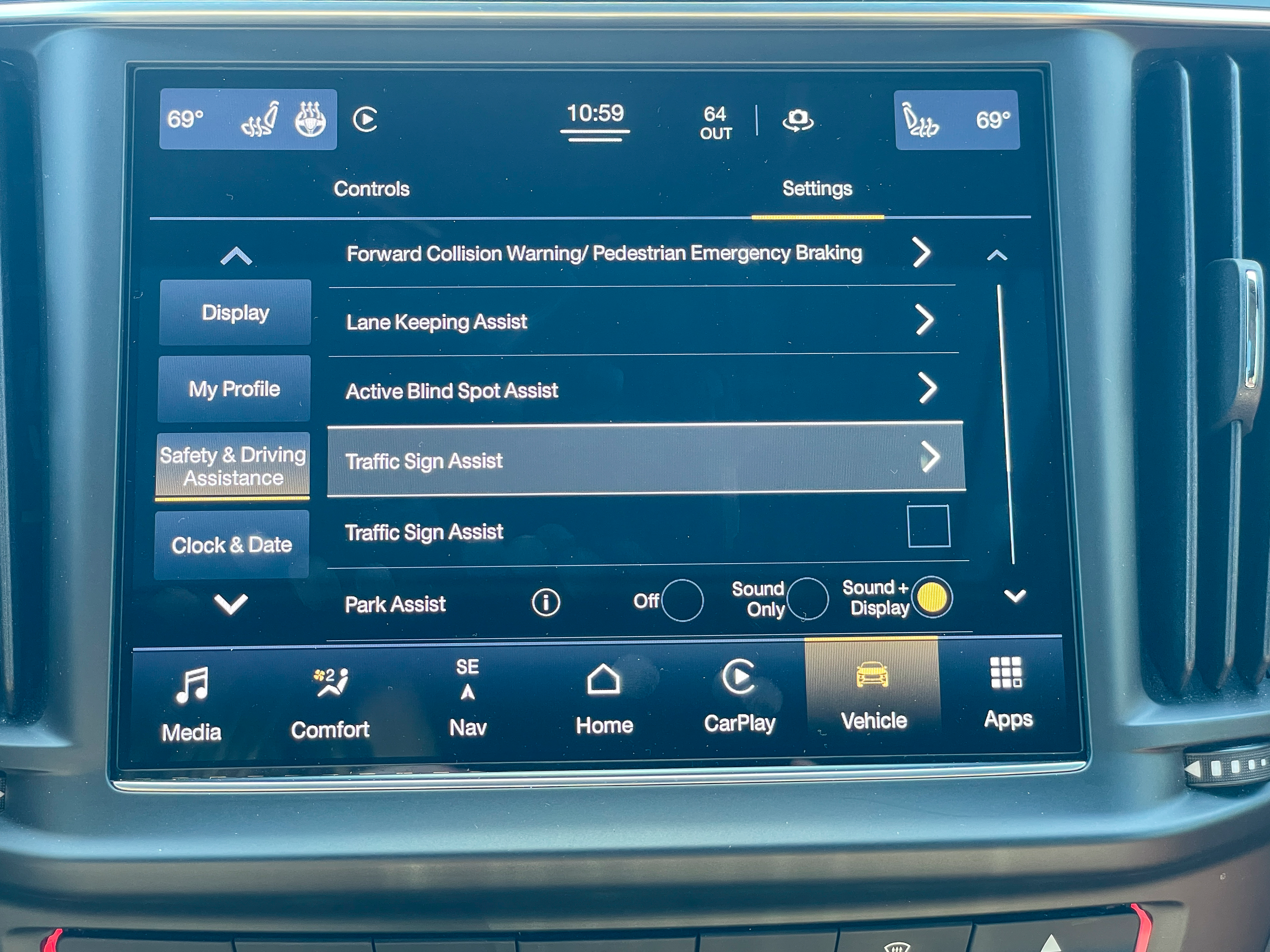 That same screen is also where you will find your vehicle settings, especially for your "Safety & Driving Assistance" systems. While I kept most of them on, I did take the lane-keep assist off. There was also an alert that kept going off on the car, and I could not for the life of me figure out which alert it was for. Each time I thought I had figured it out, it wouldn't happen again.