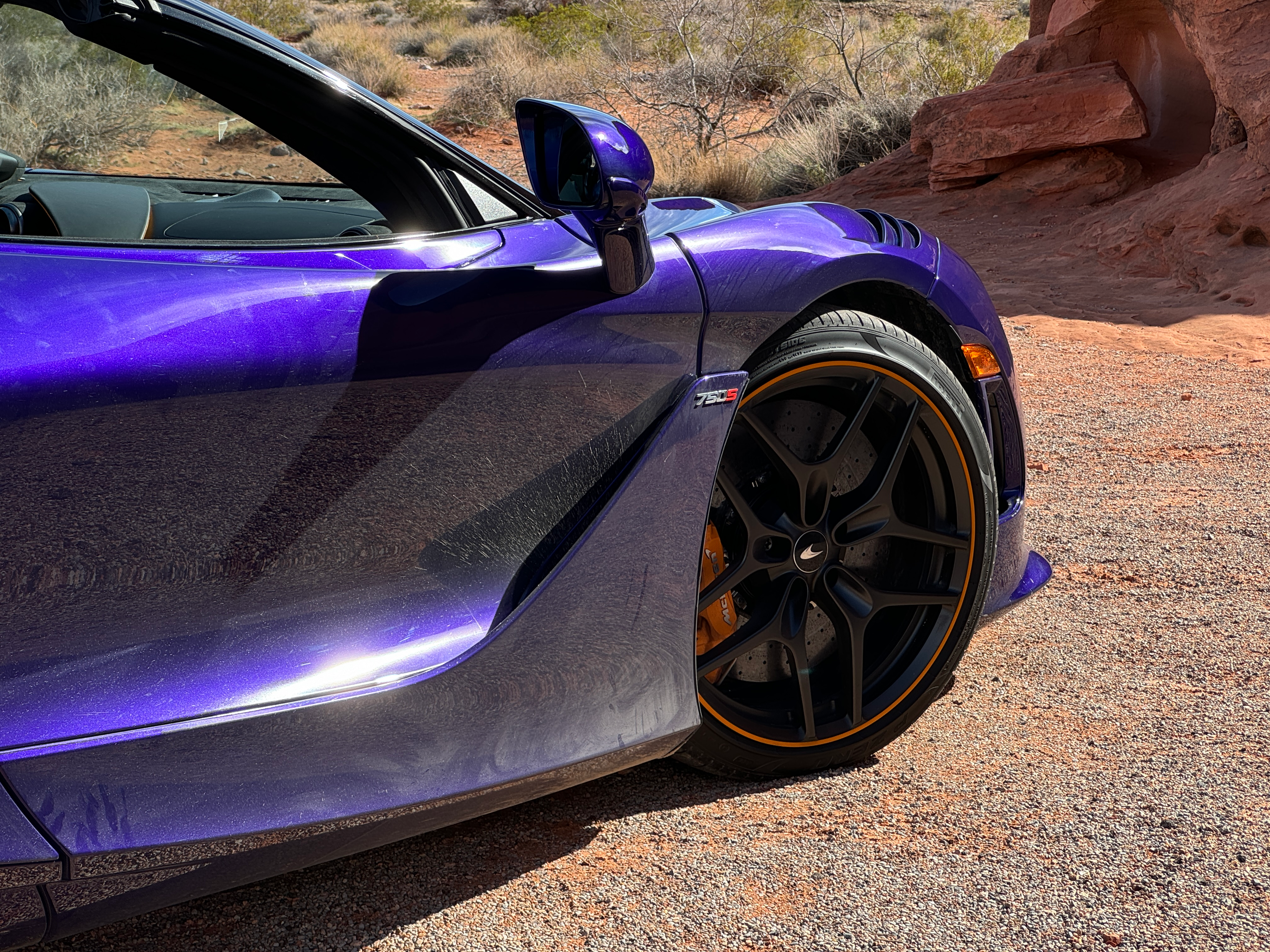 At $423,340 all-in my purple 750S Spider is actually one of the cheapest cars at the launch event, as it doesn't have any of the optional visible carbon-fiber accents, bucket seats or other items that drive up the price — one Spider costs a whopping $502,550. Don't take that to mean this car isn't loaded-up though, as it has more than $70,000 in options. These range from the $9,900 paint and $5,900 wheels with $1,700 titanium wheel bolts to the $8,750 painted carbon-fiber front fenders and $3,300 carbon door sill trim. Even before you start adding on the add-ons, the 750S is still quite expensive albeit in line with competitors like the Ferrari 296. The Spider's starting price of $351,800 (including $5,500 destination and $1,300 gas-guzzler tax) is worth the extra ask over the $330,800 Coupe, I think.