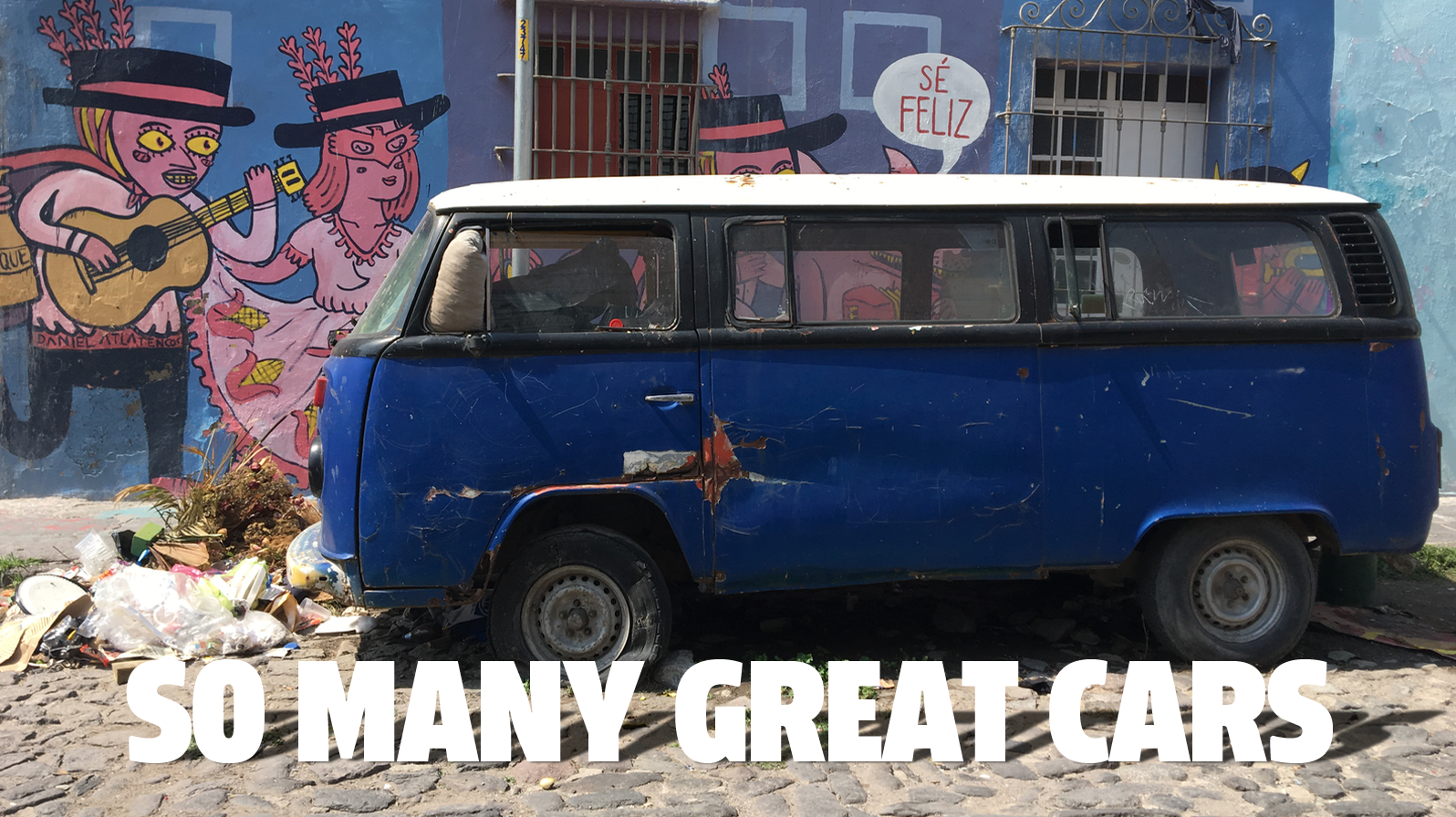 Puebla is an absolutely lovely city, really, surrounded by menacing volcanoes and colonial-era ornate buildings. There's incredible murals everywhere, and while many of the cars seem to be worked very hard and live rough lives, they're mostly still going, and there's some really interesting stuff to be found.