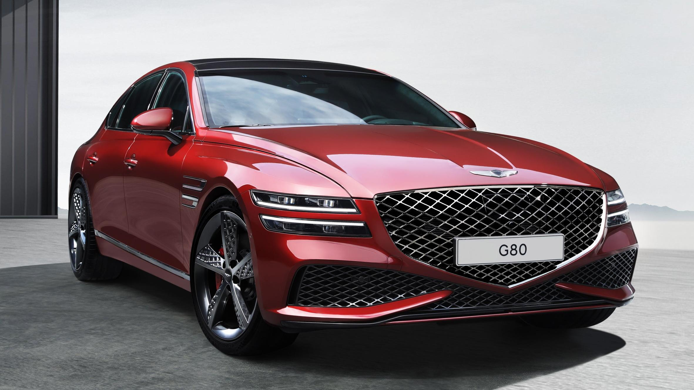 Genesis did announce the G80 Sport gets a new dark gloss chrome grille, black bezels around the headlights, dark chrome on the side moldings, a tweaked rear bumper with a new diffuser design, and the brand's G-Matrix patterned 20-inch dark alloy wheels with either red or black brake calipers.