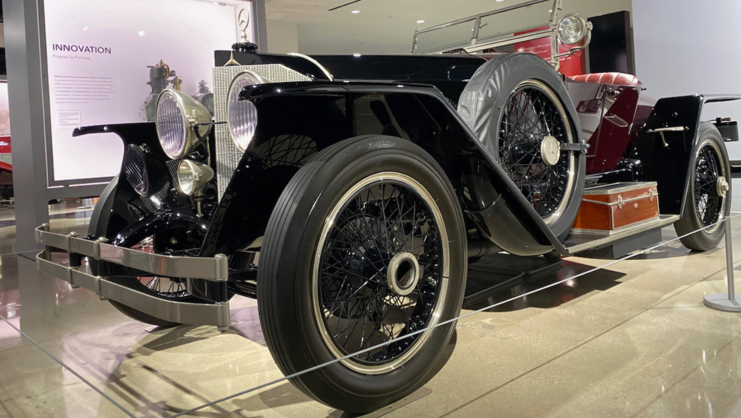 The 1923 Mercedes 28/95 Targa Florio was built to celebrate the marque's win at the epic Italian road race the year before. The big two-seater features a huge engine cowl behind its V-shaped radiator grille. Beneath that lies a 7.2-liter inline-six that was derived from a WWI aircraft engine. This car was owned by racer and NBC Radio Orchestra leader Don Ricardo from 1986 until his death in 2001.
