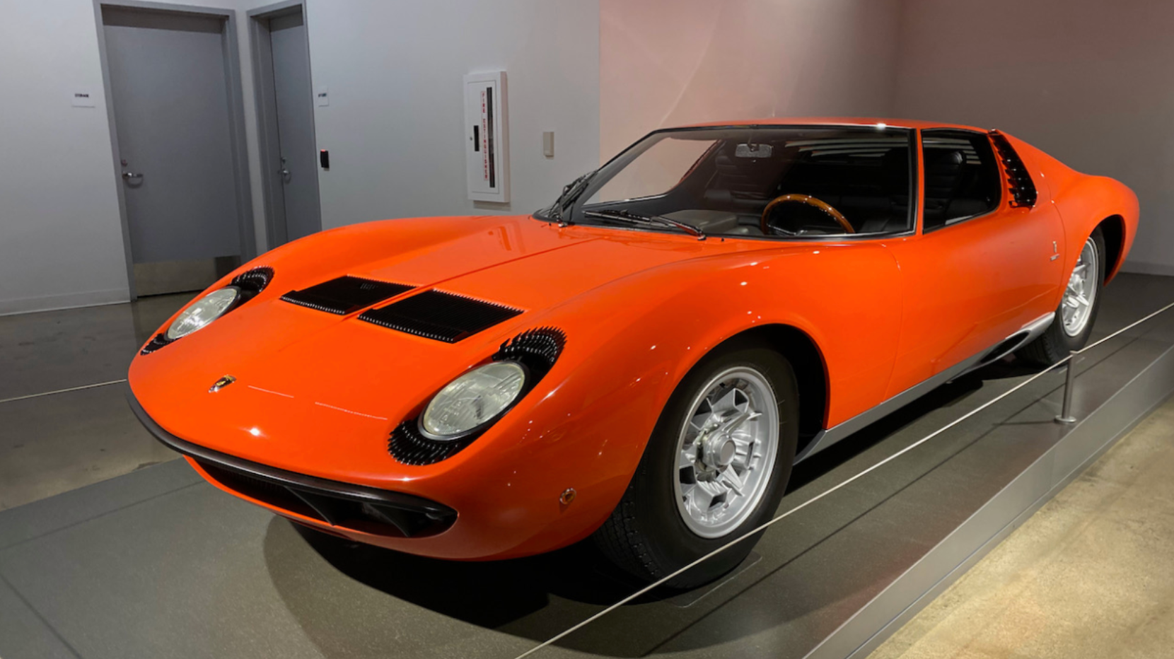 Lamborghini intended the Miura, which made its debut in 1966, to be a racecar that was civil enough for the road. The two-seater was designed around a folded steel frame that carried a transverse V12 engine. The packaging is so tight in the Miura that the engine and manual gearbox share a common sump. On top of that was laid one of the most achingly beautiful bodies ever commissioned to metal. Remarkably, the Gandini design looks just as powerful and relevant today as it did when the Beatles were topping the charts. The 1968 Lamborghini Miura P400 on display is part of the Petersen Collection.