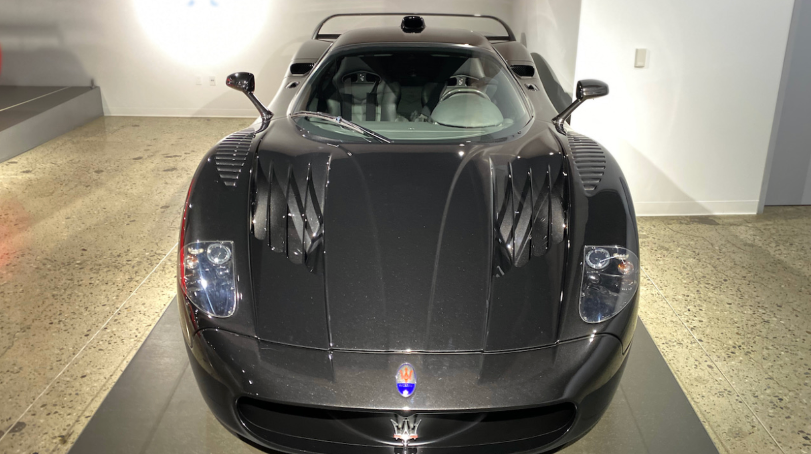 The 630 horsepower Maserati MC12 was derived from the Ferrari Enzo and provided the marque with its first mid-engine offering since the 1978 Bora. Intended to campaign in FIA's GT class, 50 Stradale MC12s were also built over the course of the 2004-5 production run. Most of those were painted in a traditional white-and-blue livery. This particular car is an exception, painted in a glittery charcoal metallic. That was intended to set it apart from the other Stradale MC12s as it was Maserati's gift to racing legend Michael Schumacher for his work in aiding the model's development.