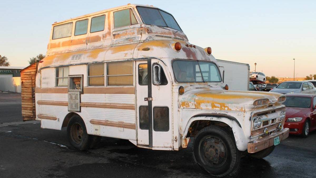 The bus is really two vehicles and a portion of a building all in one. The main bus is a 1962 Chevrolet heavy duty C Series school bus chassis. Under the hood resides a V8 engine. Chevy's C Series heavy-duty trucks at the time had a standard 348-cubic inch Workmaster Special V8 making 185 horsepower. There was also a Workmaster V8 with the same displacement but making 230 horses.