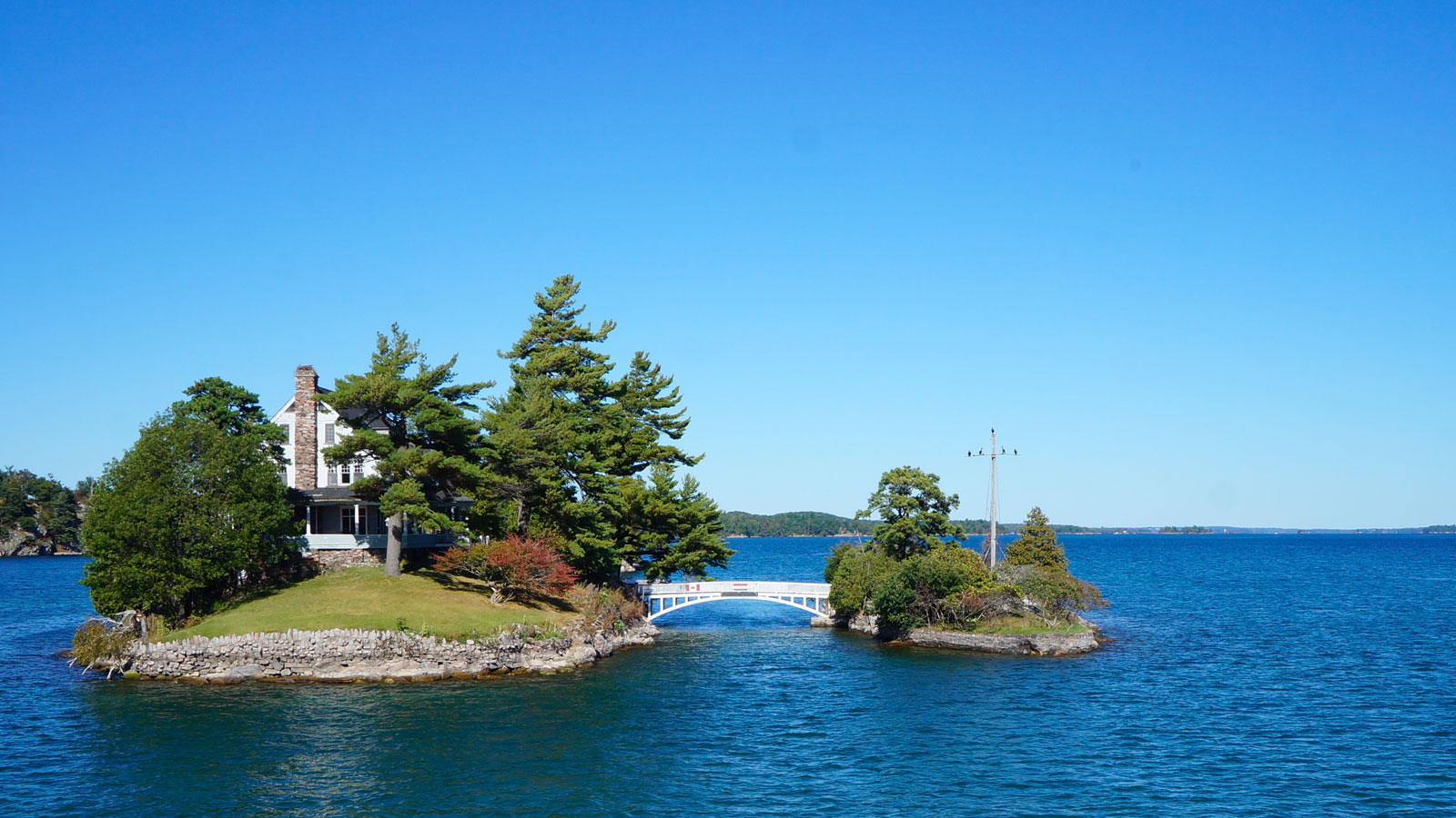 "These two islands were joined by a bridge because the smaller island is owned by the same person who owns the house on the larger, Canadian island. They use the smaller island as a backyard."
