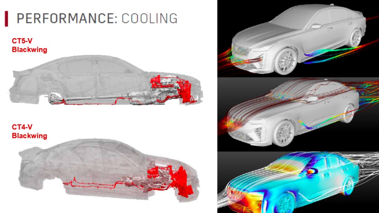 Cadillac didn't have engineers at my preview session in a warehouse in Warren, Michigan, so the brand wasn't able to get deep into the CT4-V Blackwing and CT5-V Blackwing's tech. But right away, it was obvious how epic the cooling systems are — unsurprising, given the ATS-V was a masterpiece in this area.