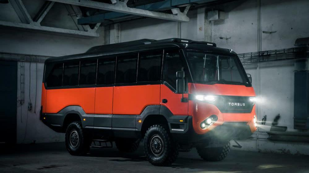 Czech Republic-based Torsus's bus is designed first and foremost for mines and oil fields where crews of workers need to cross rough terrain with regularity. While Land Cruisers work just fine for a few workers, big jobs require big crews and that's where the Praetorian is supposed to find its niche. The Praetorian is a fully integrated vehicle with climate control, advanced suspension, and a finished interior, all important upgrades when it comes to off-road worker transport.
