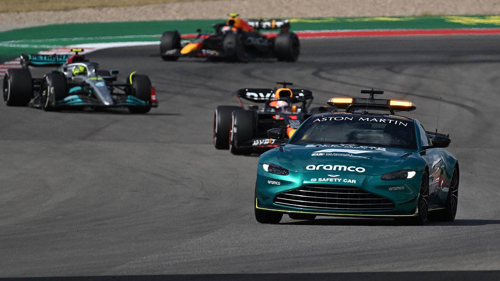 Before the race starts, the safety car will lead the 20 racers on a parade lap of the circuit, before each car lines up in its grid spot for lights out. The safety car is then called on to slow the pack following any incidents. If there's a collision, the safety car is deployed to bunch up the cars and give the marshals space to clear the track.