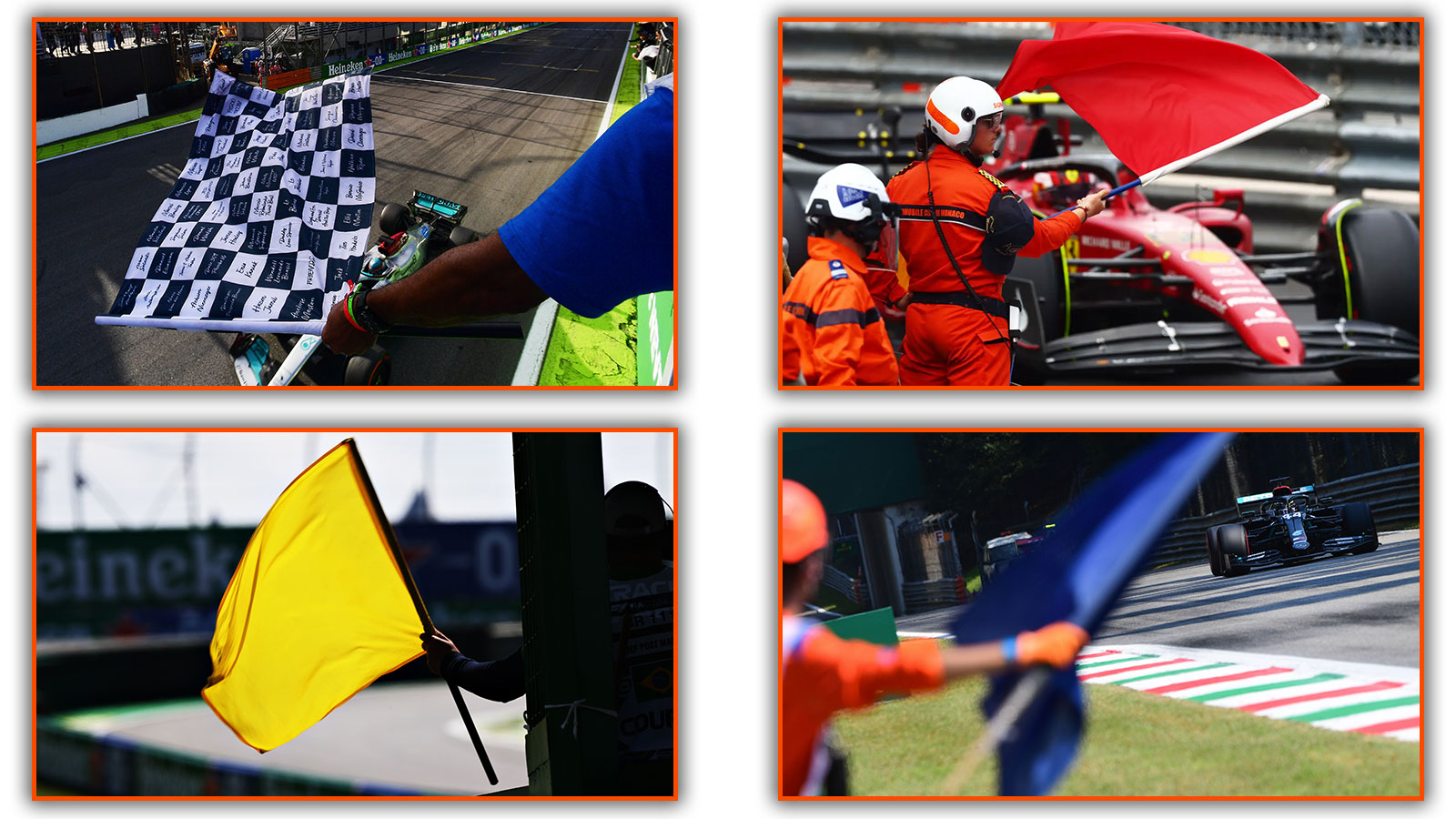 There are 12 different flags that can be waved by marshals during an F1 race, and you can find out the details on all of them here. But, if you want to know the essentials, you just need to remember yellow, red, blue and checkered.