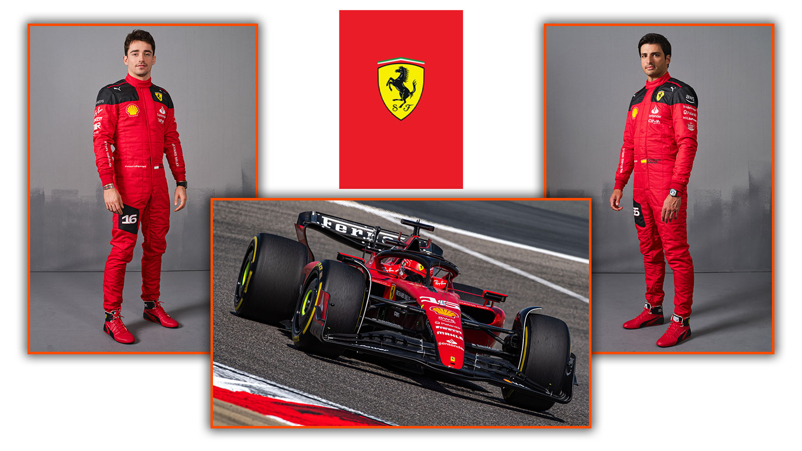 Drivers Charles Leclerc (L) and Carlos Sainz Jr. (R) remain at the Italian team this year, but are now joined by new team principal Fred Vasseur. The ex-Alfa Romeo boss will be looking to tighten up the team's performances in 2023.