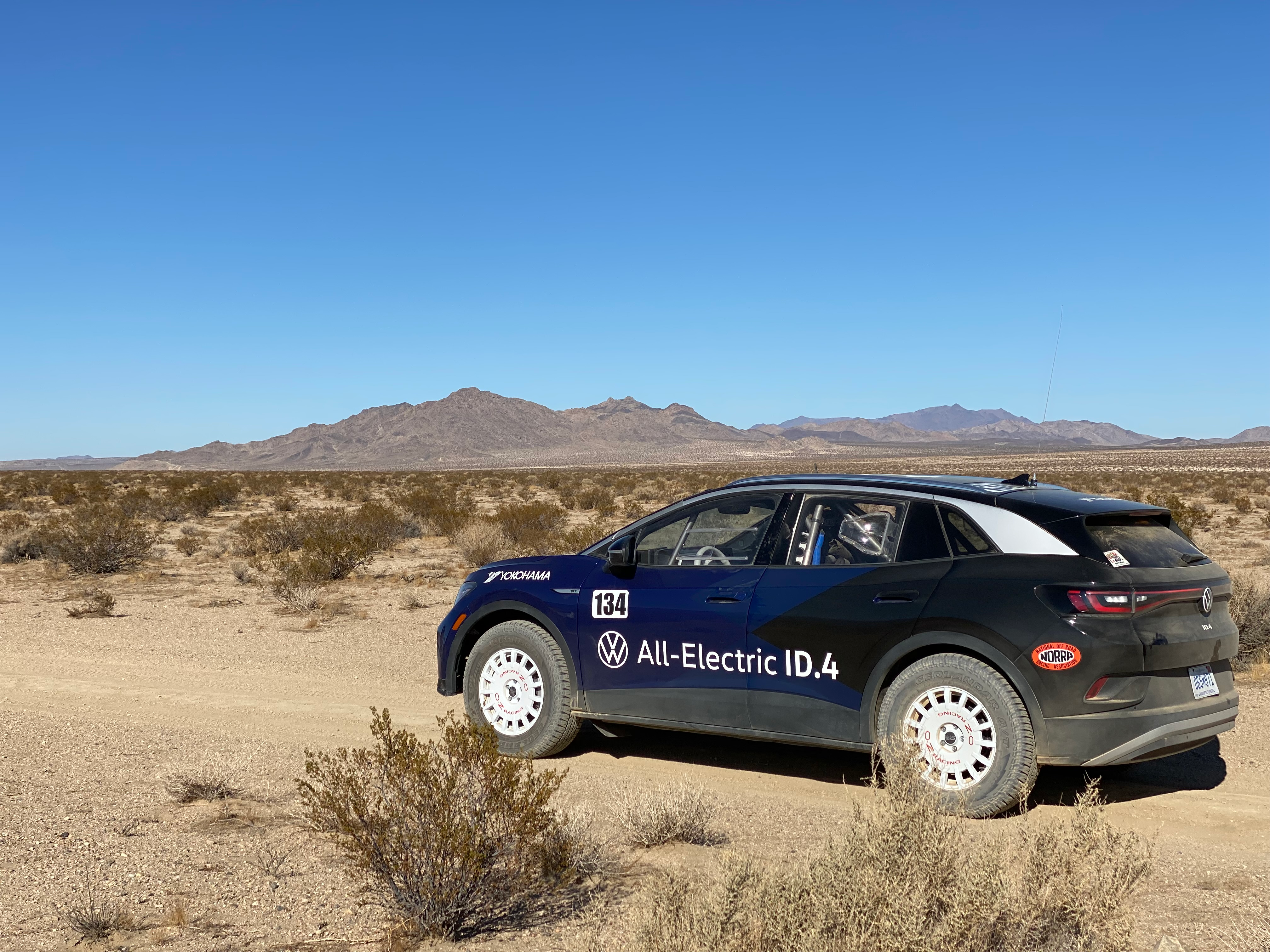 This one was the ID.4 First Edition that competed in the National Off-Road Racing Association Mexican 1000 (NORRA) with Tanner Foust at the helm and Emme Hall navigating. This 840-mile race wasn't so much about winning as it was about just finishing. They finished at the back of the pack, but it was still a triumph for Volkswagen as they did it without running out of juice on the stages.