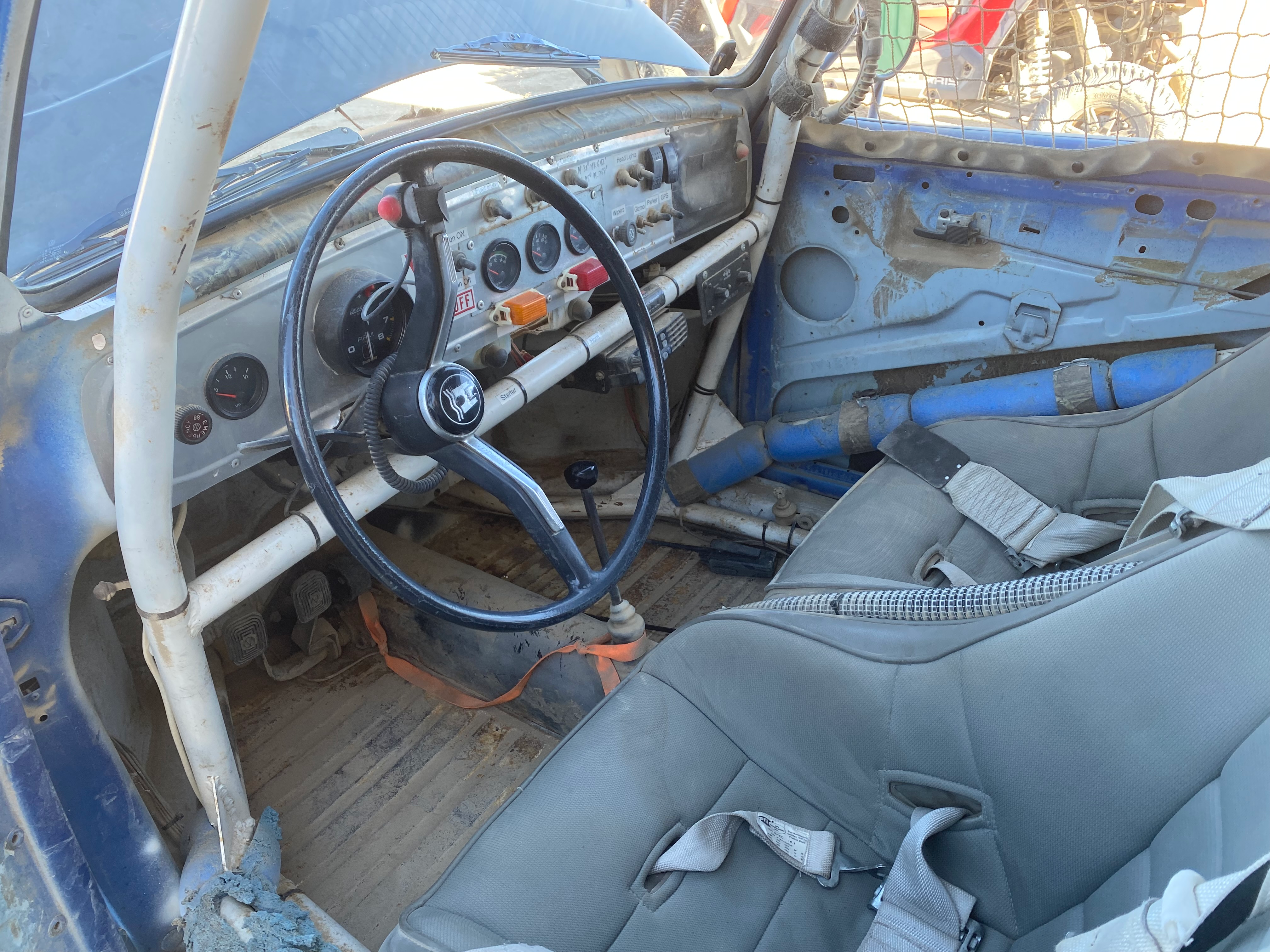 My test started out with me driving Volkswagen's off-roading past. The car was a 1969 Volkswagen Beetle built to Class 11 desert racing specifications. This thing had a roll cage, harnesses, a foot of ground clearance, a Bilstein prototype "Ensenada" race suspension, and a hilariously complicated starting procedure.