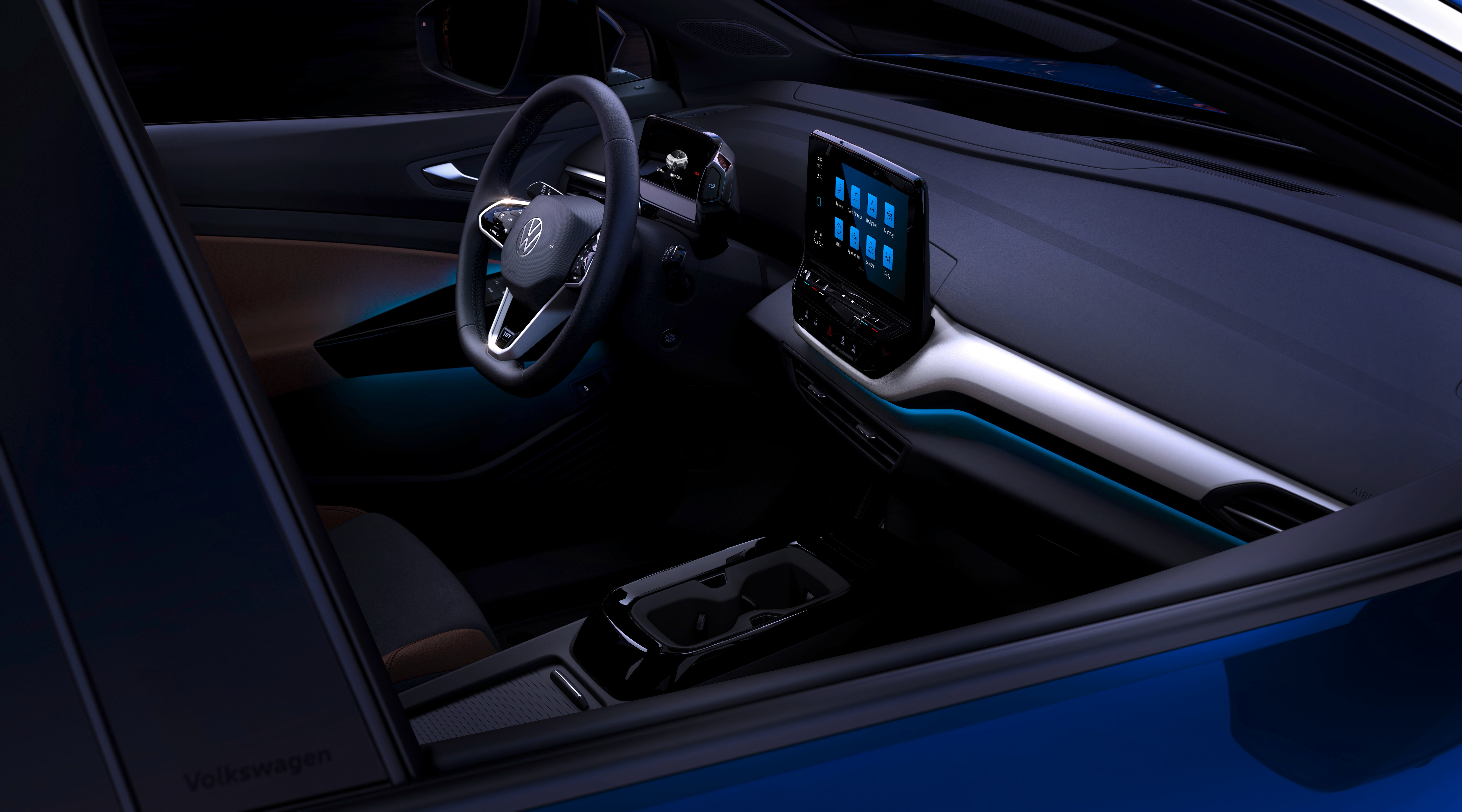 The ID.4 will feature ID. Light—a light strip below the windscreen to support drivers in a host of situations with intuitive lighting effects in different colors. For example, ID. Light signals to the driver that the vehicle's drive system is active and that the car has been unlocked or locked. It accentuates information issued by the driver assist and navigation systems and signals braking prompts and incoming phone calls.