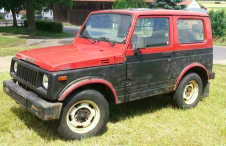 Here's a vehicle that I discovered on what I like to call "Germany's Craigslist," Mobile.de. It's that Suzuki SJ 410 you see above, which is quite similar to the Suzuki Samurai we got in the U.S. It's a tiny, capable little 4x4 whose 44 horsepower probably make it a hell of a difficult car to merge onto the Autobahn, but I don't care. It's 900 Euros, and dripping with soul. And the nicer one shown below—also a 1987 model like the first one—is only 100 Euro more.
