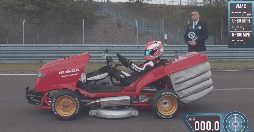 Basically, this lawn mower can beat most of the cars heading out to your local drag strip on Thursday nights to flex on everybody else. It's humbling, really.