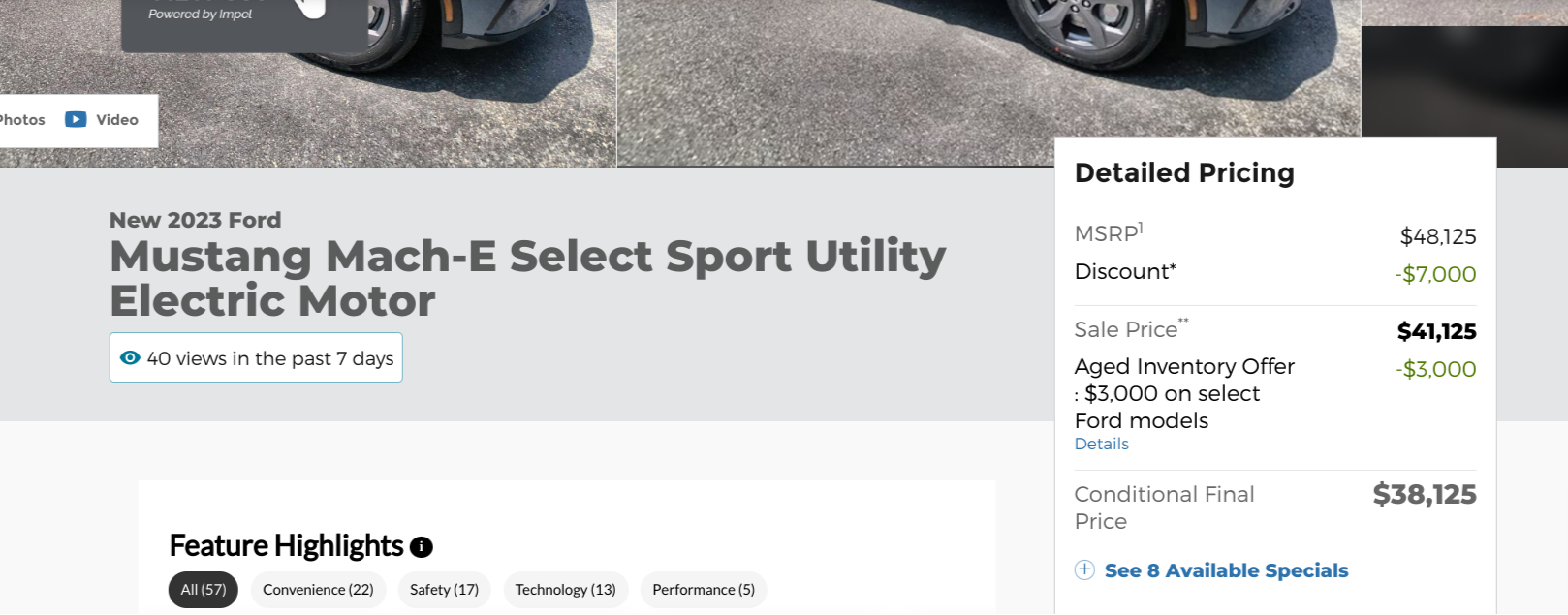 In some areas Ford is offering a $3,000 rebate for "aged inventory" combined with aggressive dealer discounts this means you can potentially can score a Mach-E at $10,000 off MSRP.