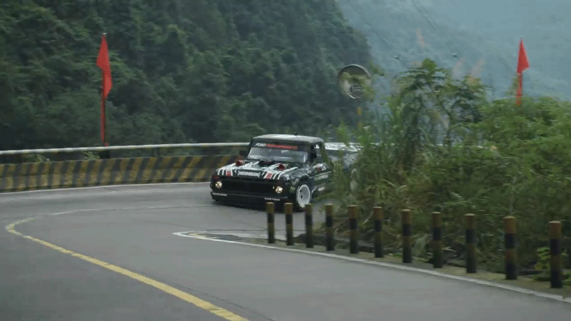It is the mountain that conquers us, every time. Though we climb it, it is the mountain that changes us, not the other way around. We look down on the rest of the world from its summit, but even in doing so the mountain itself looks down on us. There is no conquering a mountain. We can only hope to find some harmony with it, a give and a take. That is why the road that winds up Tianmen mountain has 99 corners, and that is why Ken Block ran sideways up it in a 914-horsepower twin-turbo Ford drift truck.