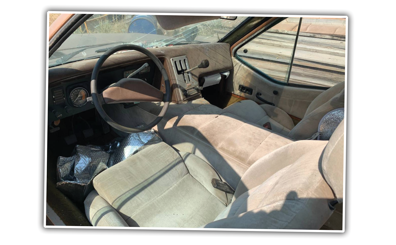 This thing gets weirder when you look at the velourtabulous interior and see that huge gated four-speed shifter nearly vertically mounted on the dash there. What the hell? The shift gate seems to incorporate the radio bezel, which may be an automotive first, too.