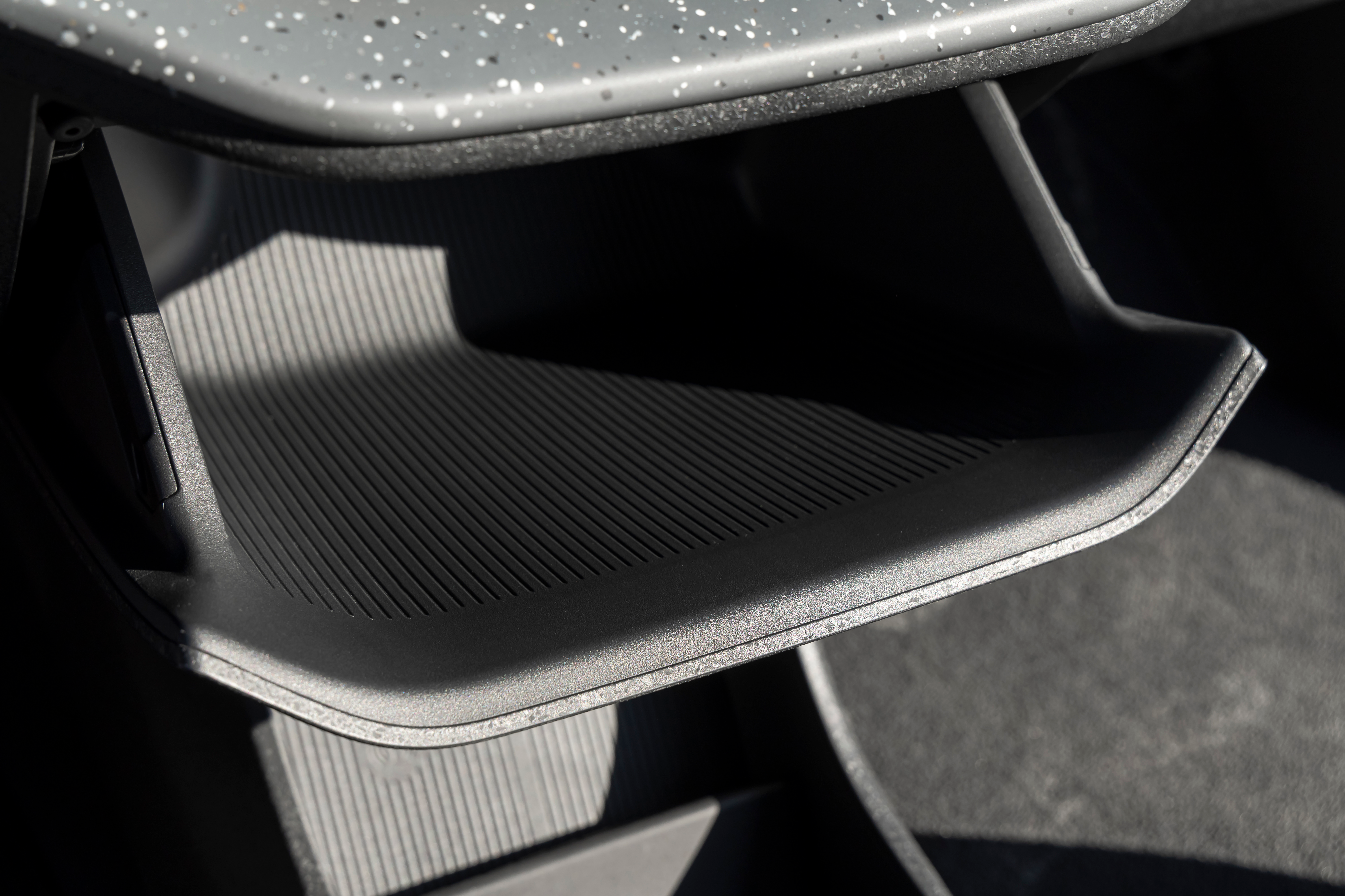 I also think this arm rest is kinda neat as well. You can see the multi-faceted black plastic made of recycled materials meant to mimic Scandinavian granite.