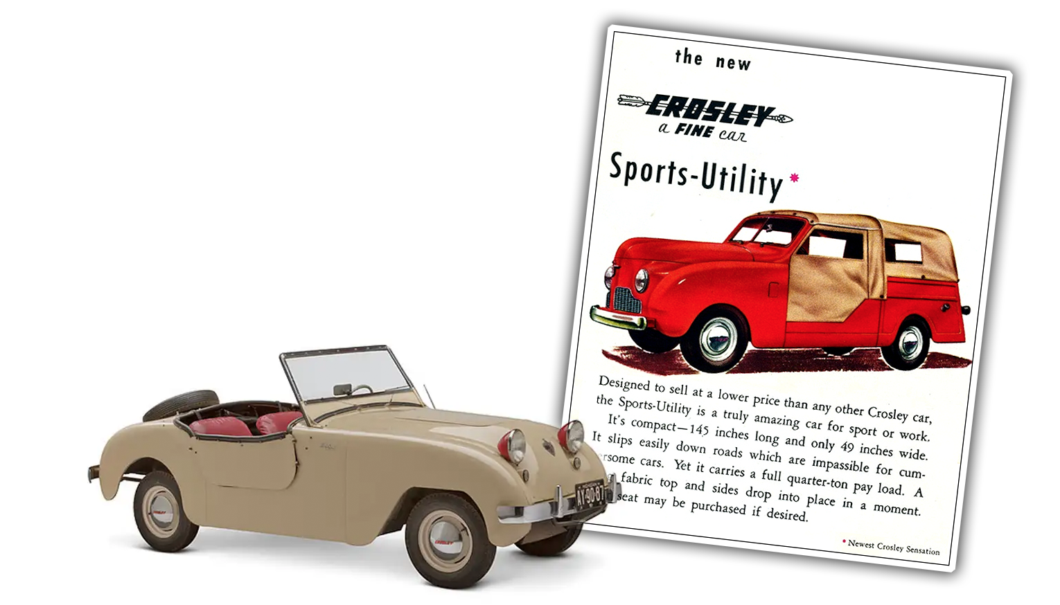 Crosley was quite innovative and capable, building their own engines and even experimenting with weird sheet-metal engine blocks, though they also had real innovations, like the first disc brakes on an American car, America's first real postwar sports car, and the first use of "Sport Utility."