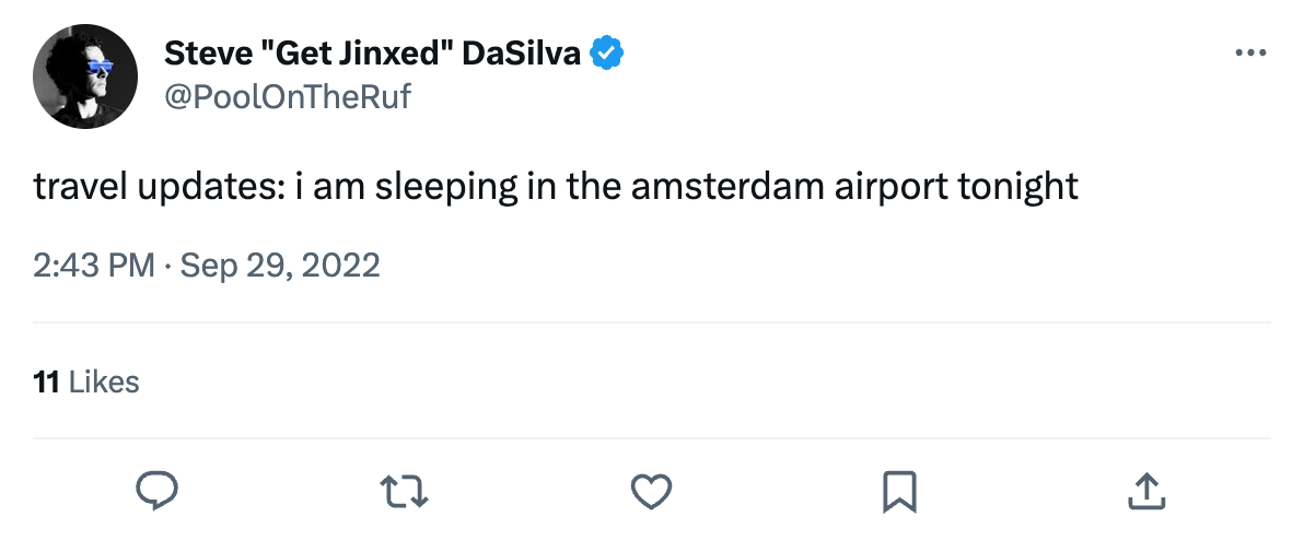 As someone with terrible horrible no-good very bad travel luck, I spend a lot of time in airports. Some of that time, I end up having to spend asleep. But I'm not gonna be so bold as to ask for dedicated sleeping accommodations, the way Erin did — I'm simple folk. I'll take a comfy enough chair and some dimmed lights.