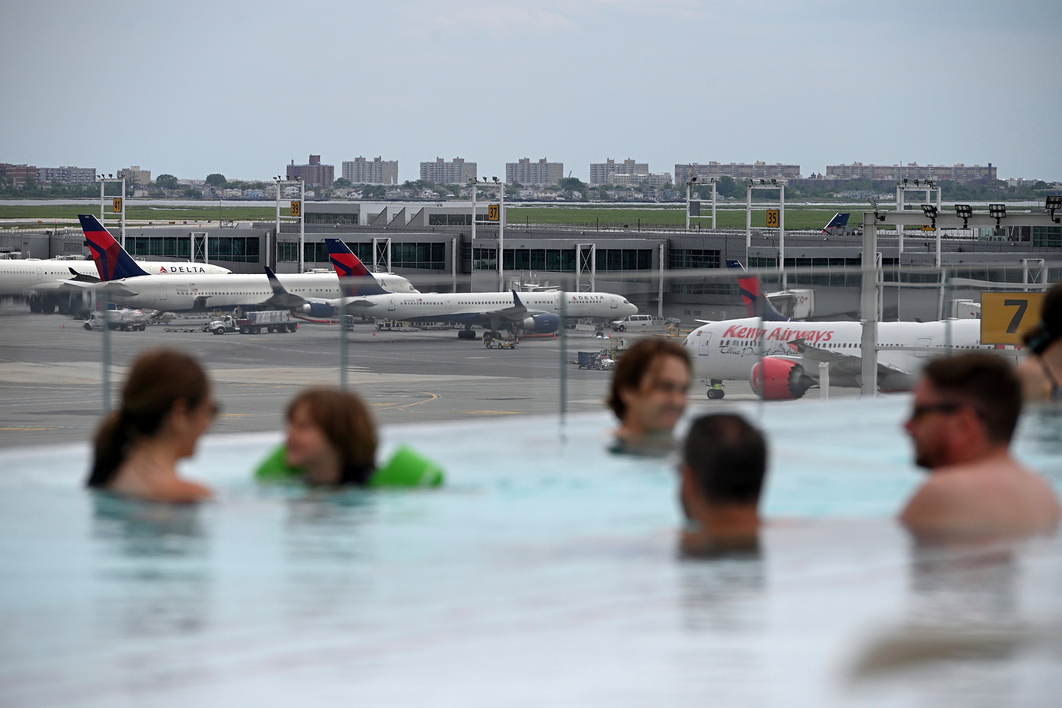 Also, the rooftop pool at the TWA Hotel constantly smells like jet fuel, so maybe indoors is best.