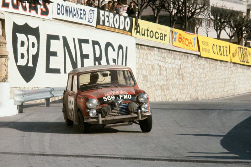 [On 21 January 1964, the Mini Cooper S won the Monte Carlo Rally for the first time. It was the pairing of Northern Ireland's Patrick ("Paddy") Hopkirk and his co-driver Henry Liddon that pulled off the big surprise, resisting the supposed superiority of significantly more powerful rivals in their small British car. Its faultless run over country roads and mountain passes, ice and snow, tight corners and steep gradients laid the foundations for the underdog-turned-giant-slayer to cement itself in both the hearts of the public and the annals of motor sport legend. Indeed, the classic Mini's dominance of the Monte Carlo Rally continued over the years that followed, Hopkirk's Finnish team-mates Timo Mäkinen and Rauno Aaltonen adding two further overall victories – in 1965 and 1967 – to the British manufacturer's collection.]