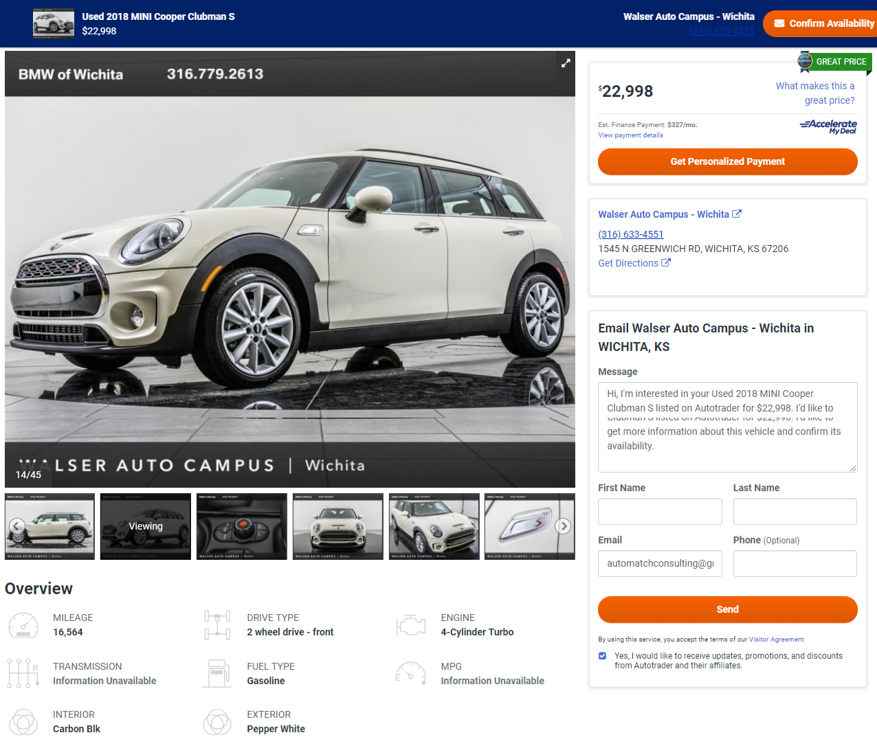 Perhaps a used Rover isn't your bag but you need something with cargo space that is a bit funky. The Mini Cooper Countryman S is a neat wagon that is fun-ish to drive, but the option packages can easily push the price into the mid-$30,000 range. However, given their high turnover rate, used examples with low can be found for under $25,000, even though most of them will unfortunately be equipped with automatic transmissions.
