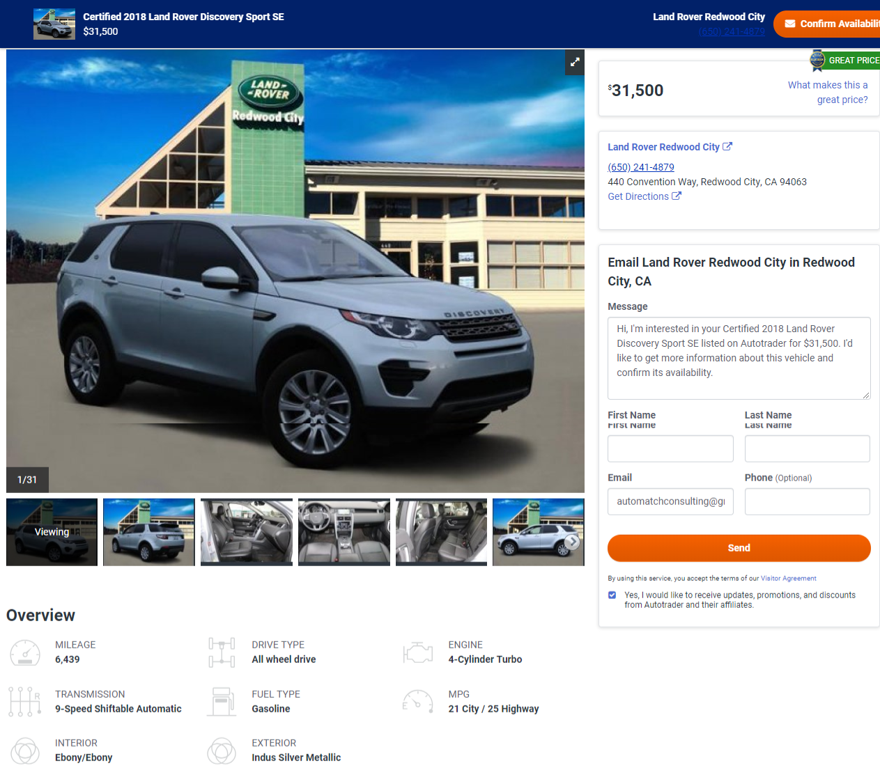 Some people need practicality over performance, however, and even though crossovers may not be the coolest car to park in your driveway, sometimes you want to treat yourself without blowing the bank. A Range Rover Discovery Sport SE will typically retail in the mid-$40,000 range. Or you can nab a certified pre-owned 2018 with about 6,500 miles on it for around $31,000.