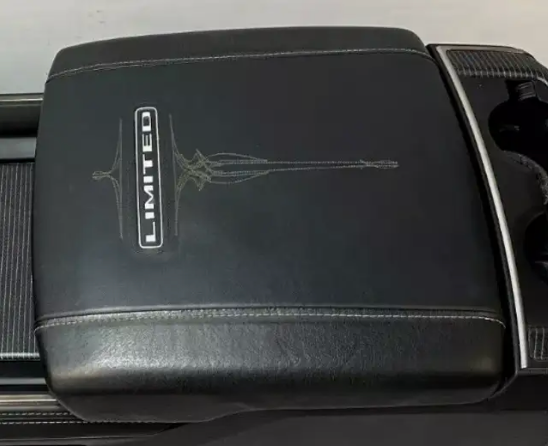 Ram 1500 with the metal badging on the armrest / center console for the front seat. This metal "Limited" badge becomes a branding iron when sitting in the sun, even on the gentlest summer days. Numerous is the times I have burnt my right forearm on this blister producer.