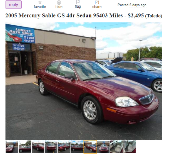 This Sable. I don't know about the overall market for Sables, but I opened up Craigslist, sorted by price, and scrolled down to the first car that I would consider if I were in dire need of basic transportation right now.
