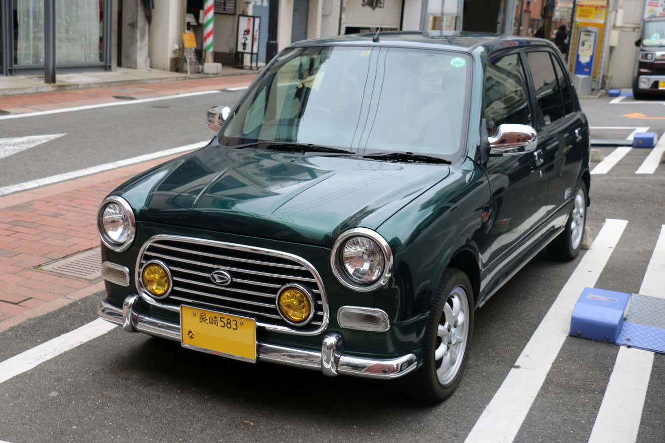 There are a couple kei cars that debuted in 1999 that I really like, the Daihatsu Naked and the Daihatsu Mira Gino. Let's go with the Mira Gino here. I saw these all over the place when I lived in Japan, and smiled whenever I saw one. Here's one of many that I photographed in Nagasaki: