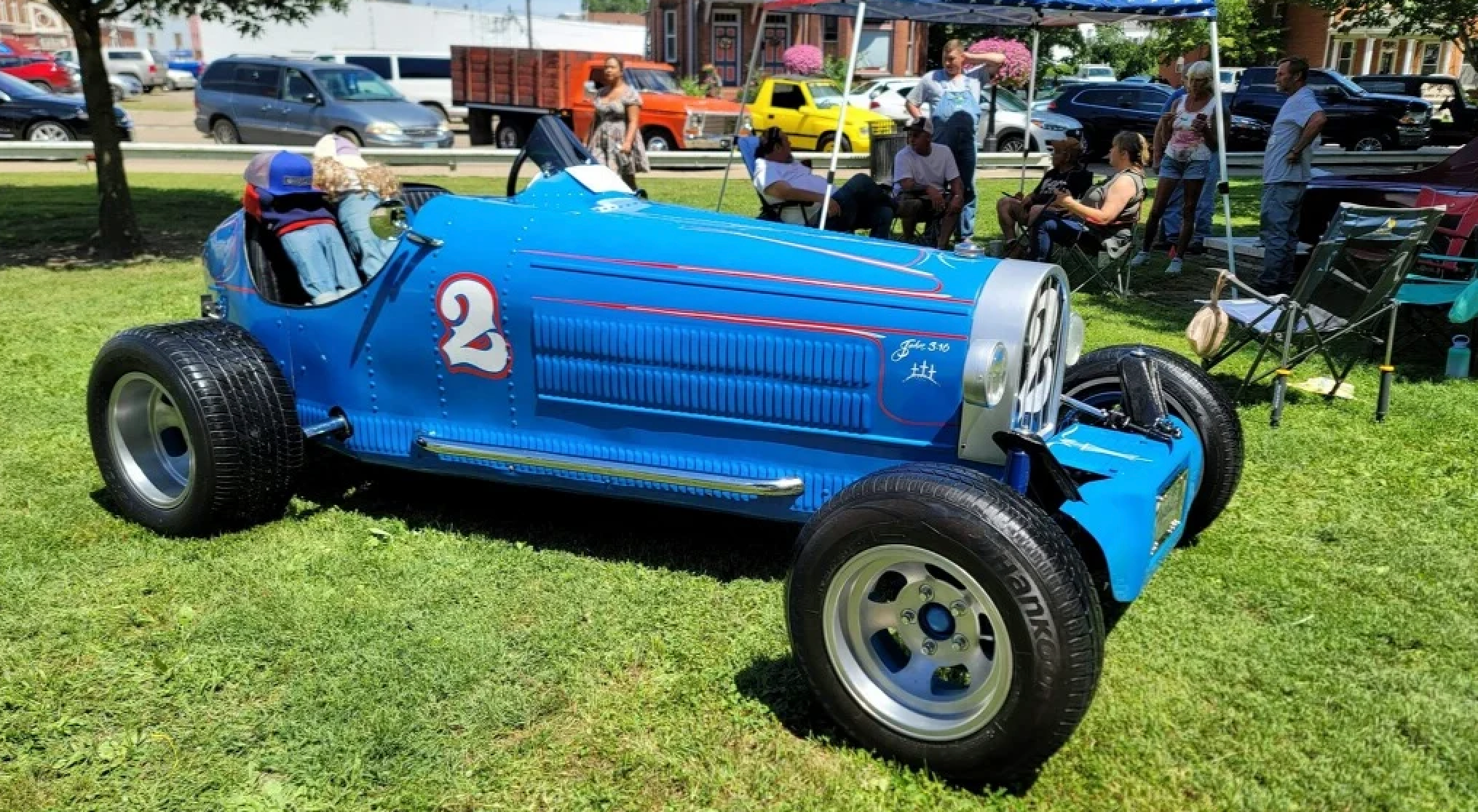 Our little podunk town of around 4,000 people managed to draw in 360+ vehicles for the annual car show this past weekend. I only caught the end of it as most cars were leaving, but my friend and co-worker spotted this Bugatti race car. Said it was found locally sitting in the weeds before being restored. I'm not 100% sure it's the real deal, but it's still neat.