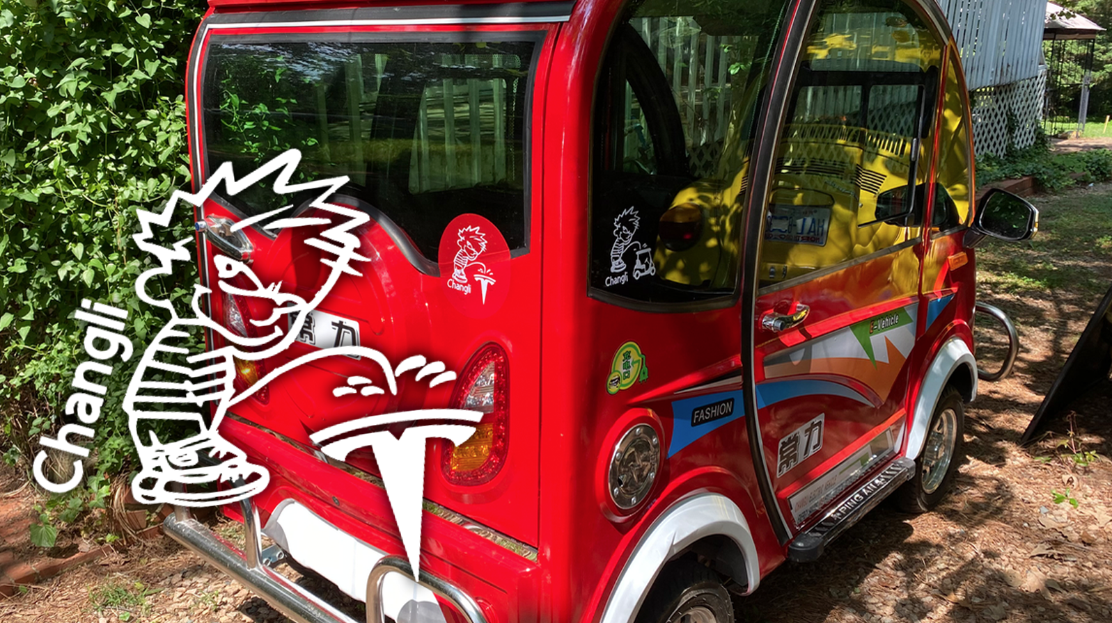 Now that I've finally got the Changli in my hands, the cheapest new electric car you can buy on Alibaba and, likely, the world (which is sort of like Alibaba but with more oceans), it's time to start to properly customize the already sublime look of the thing. And, as anyone who knows anything at all about motor vehicles can tell you, the only proper first step is to announce your car's identity via a carefully-curated selection of things for Calvin to urinate on. And I believe I've got just the right set.
